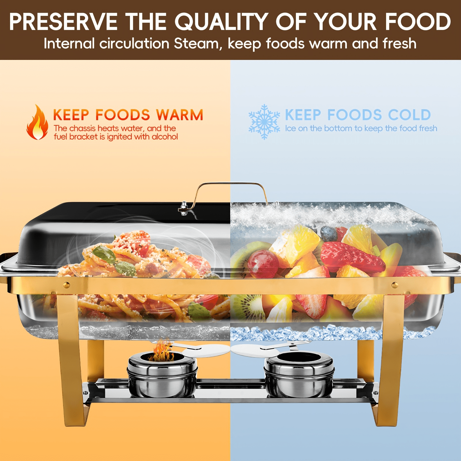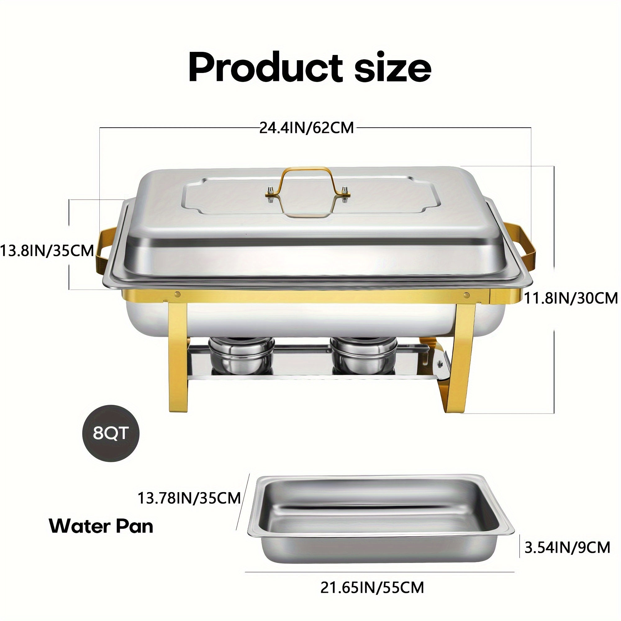 1/2/4pcs 8Qt Golden Chafing Dishes for Buffet, Stainless Steel Food Warmer Rectangular Foldable Buffet Set, Chafer Warmer, with Food Tray And Lid, Keep Foods Warm And Cold, Easy Cleaning, for Banquet, Party, Wedding, only for cooking