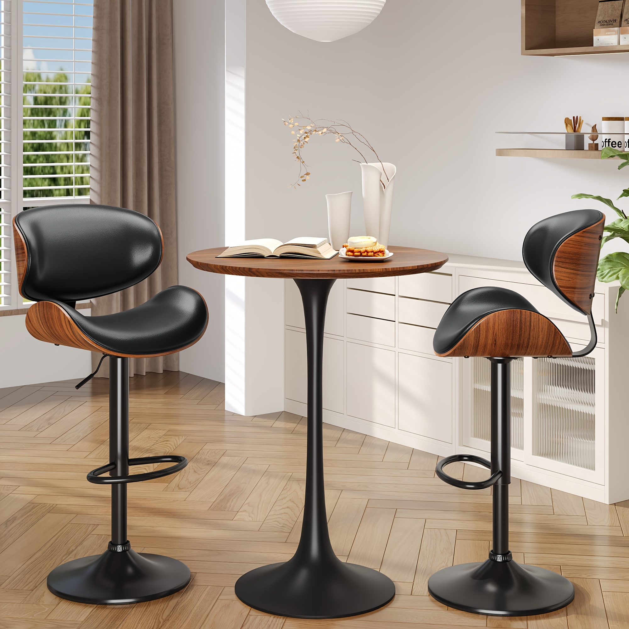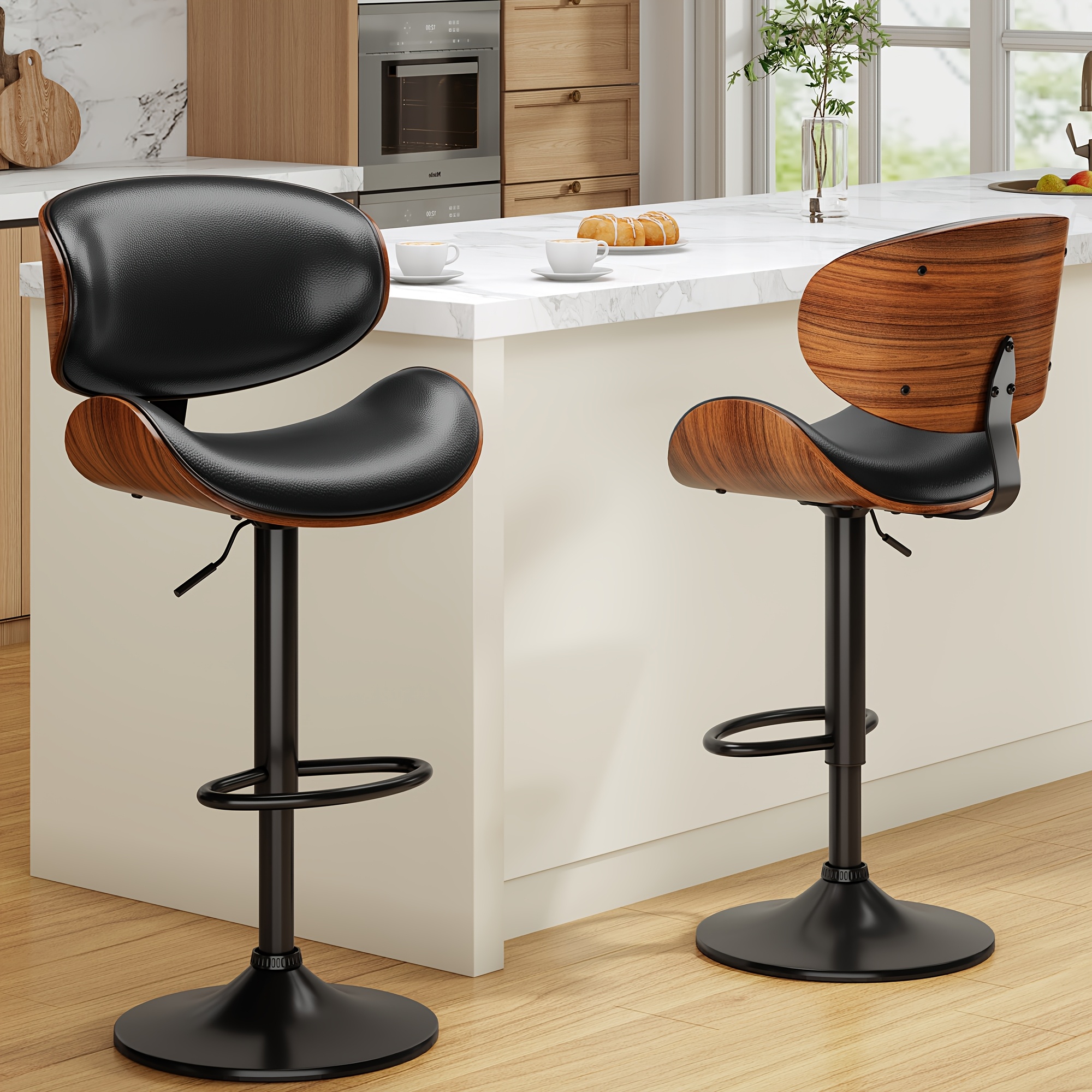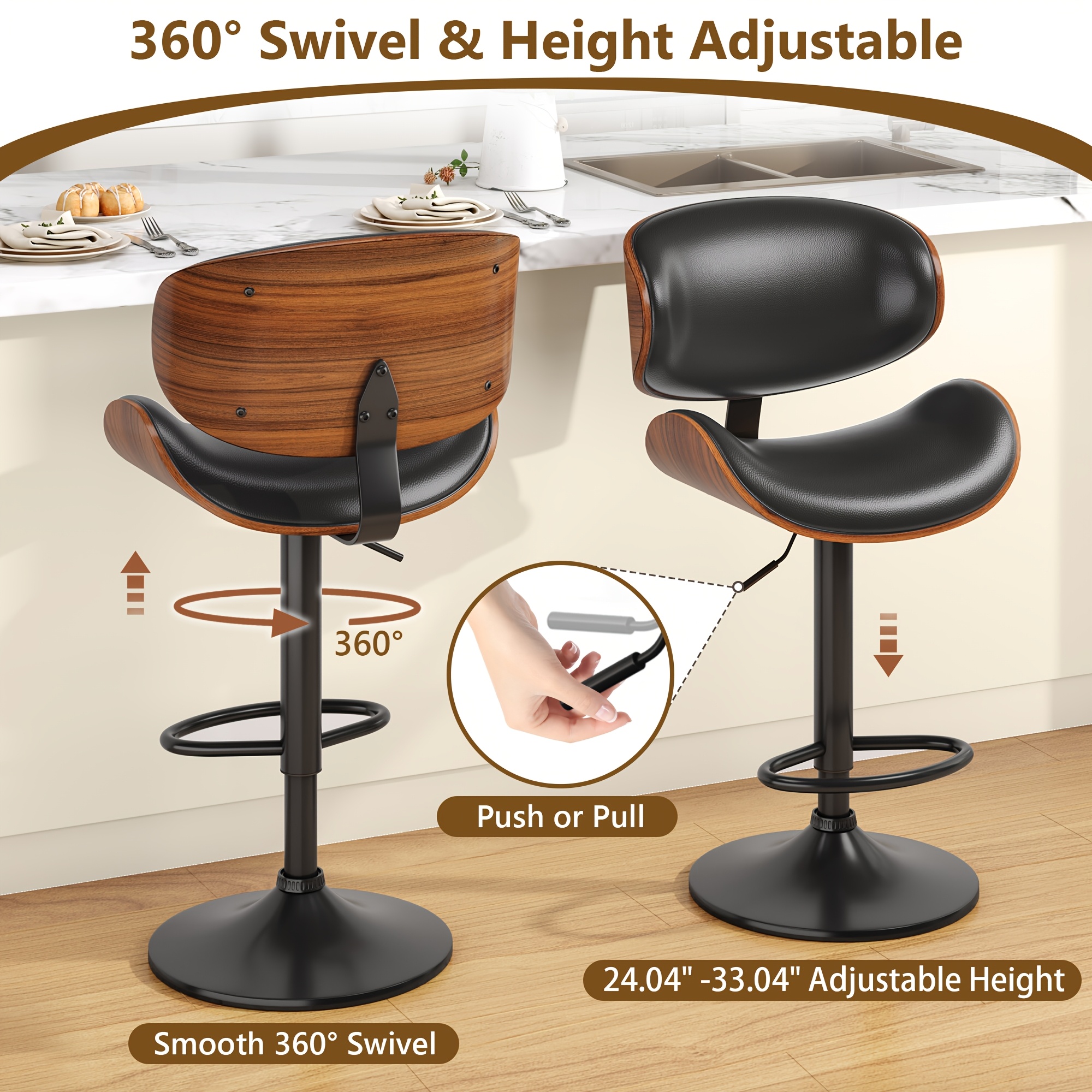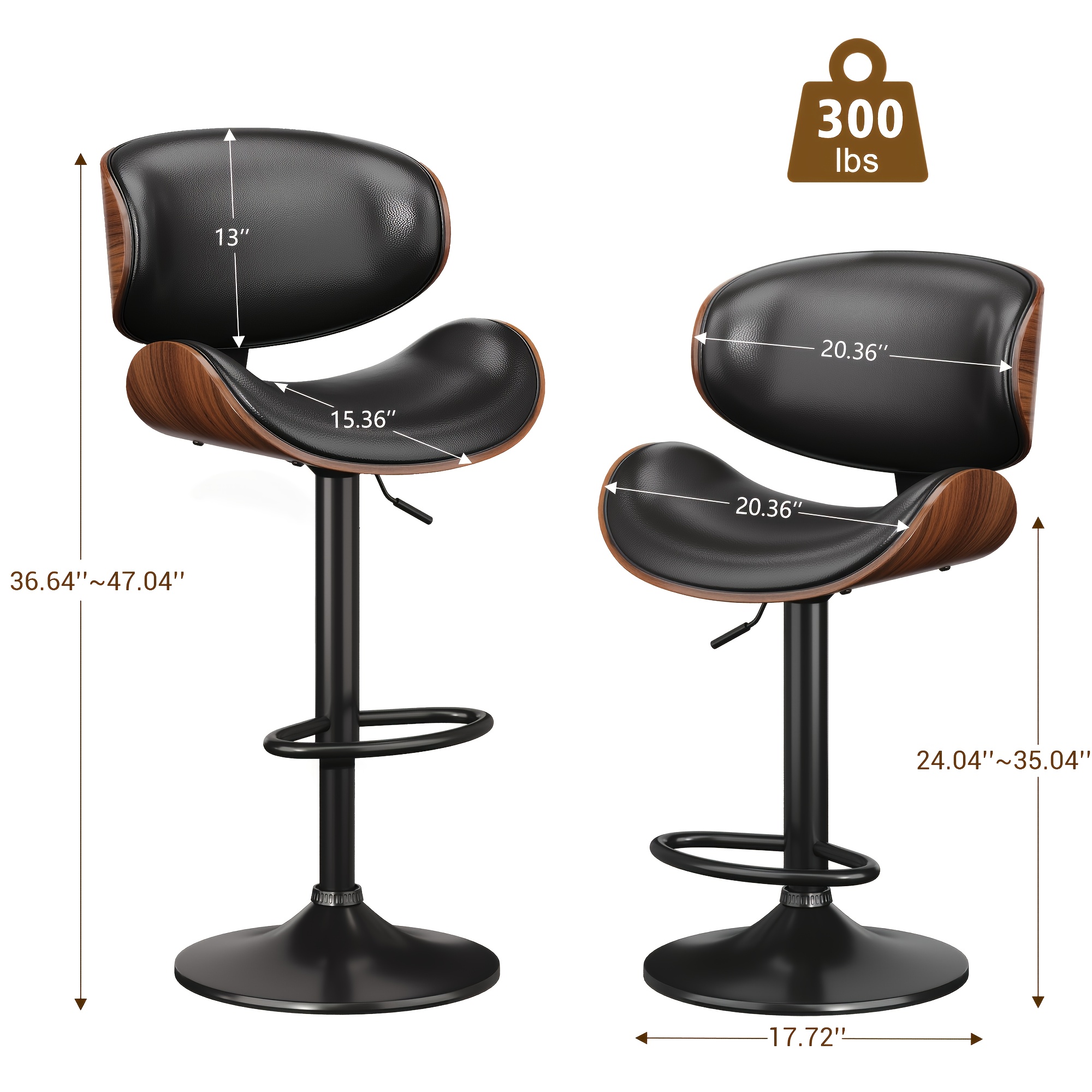 Features: [Upholstered Swivel]The comfortable design of this bar chair is in line with ergonomics. The back and cushion of the bar stool is made of soft PU leather and filled with a sponge.[Adjustable Height & Direction]By raising the lever under the seat you can easily adjust the height of the seat from 37.8” to 46.1”. At the same time, the 360-degree swivel accentuates the contoured back for optimum dining comfort.