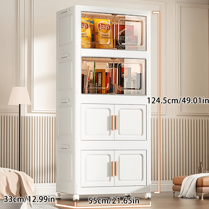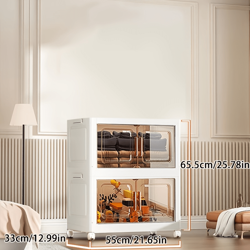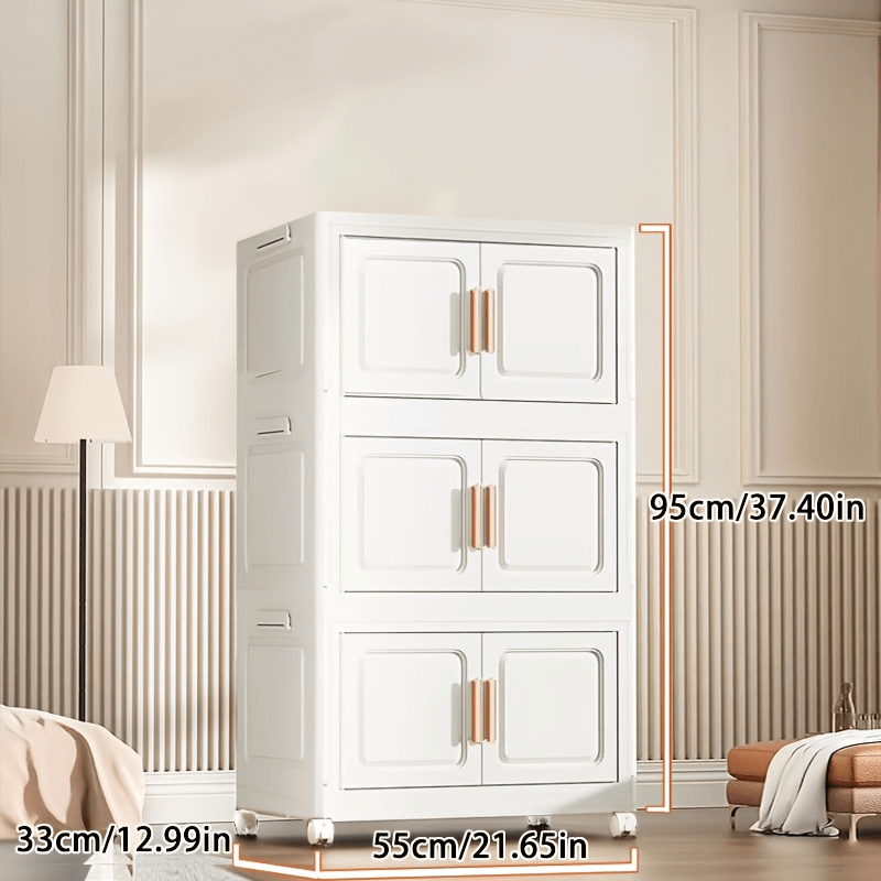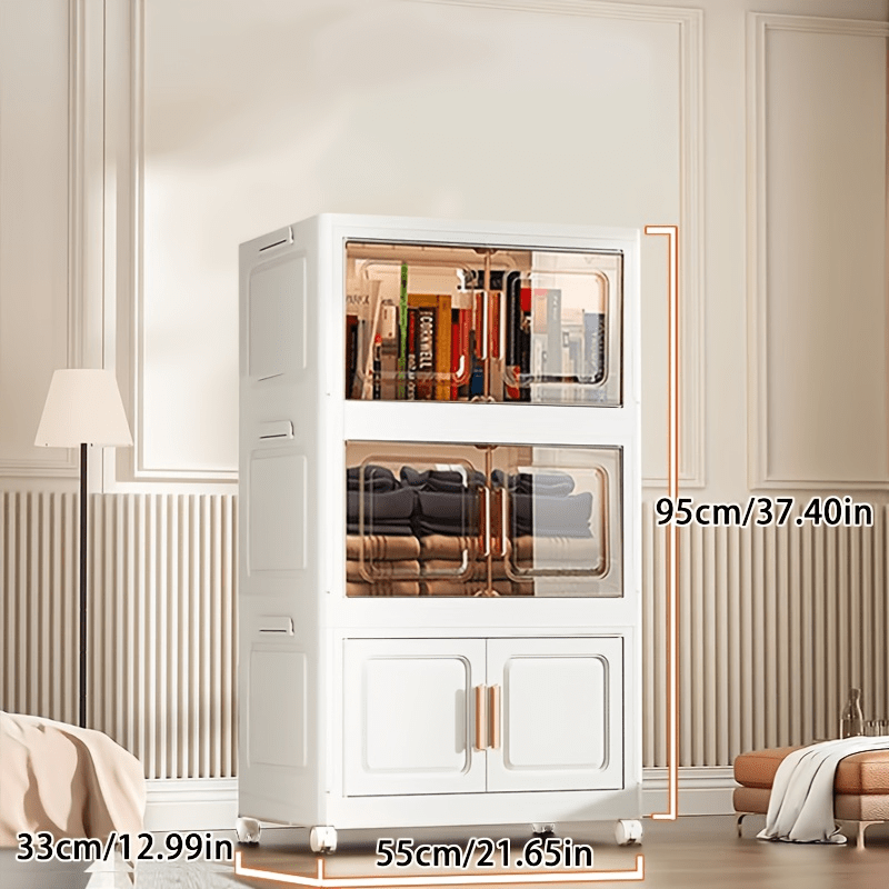 1 Easy-to-assemble Foldable Storage Cabinet-dustproof And Waterproof, Magnetic Double-door Storage Cabinet With Wheels, Sorting Clothes/snacks/books/toys, For Living Room/bedroom/study/bathroom, Storage Supplies, Christmas, Decorate Your Home