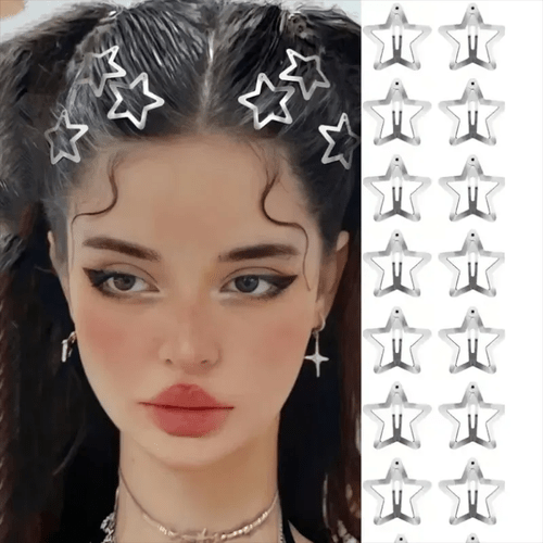 10/25/50/pcs Y2K Silver Star Hair Clips for Girls Metal Snap Clip