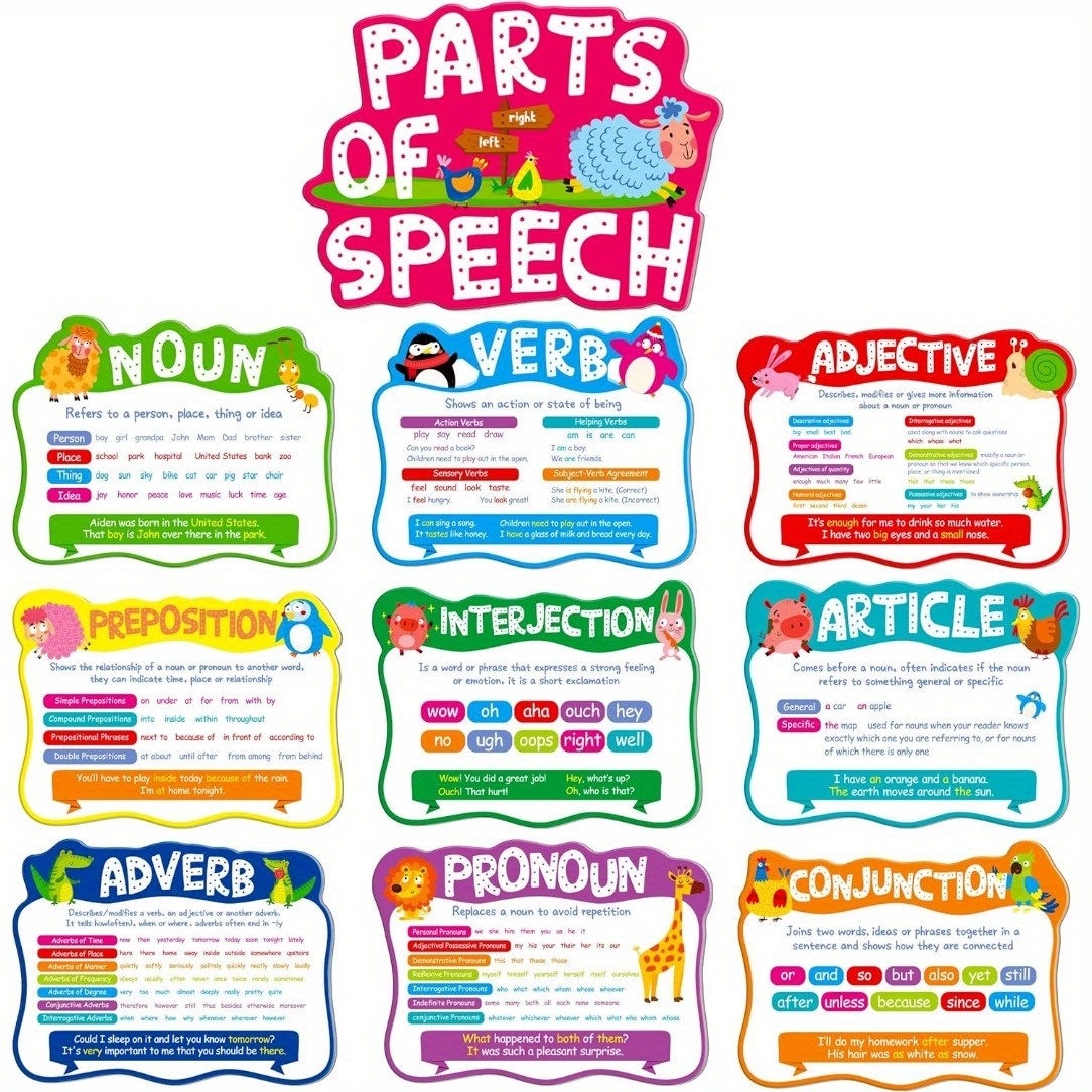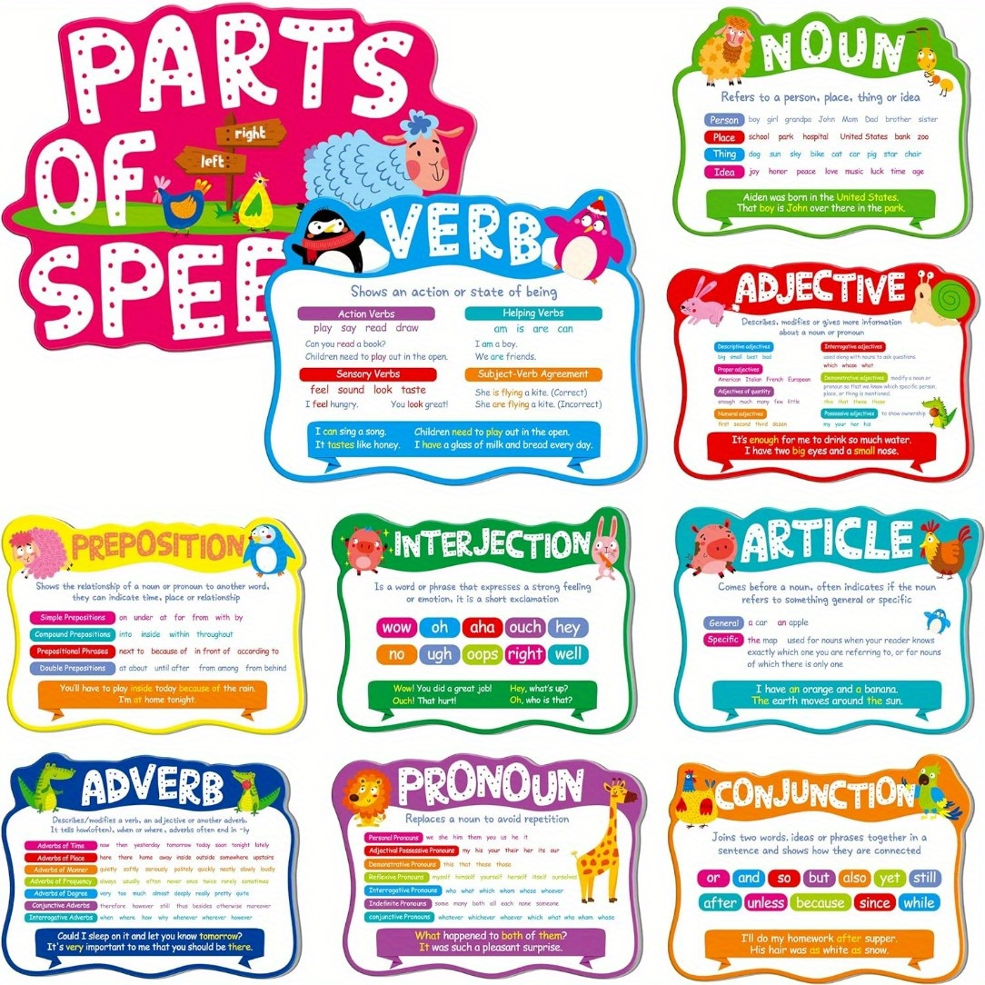 10-Pack Educational Grammar Posters for Classroom, Homeschooling – Wipeable Paper Parts of Speech Posters, 4×6 inches – Learning Foreign Language Materials