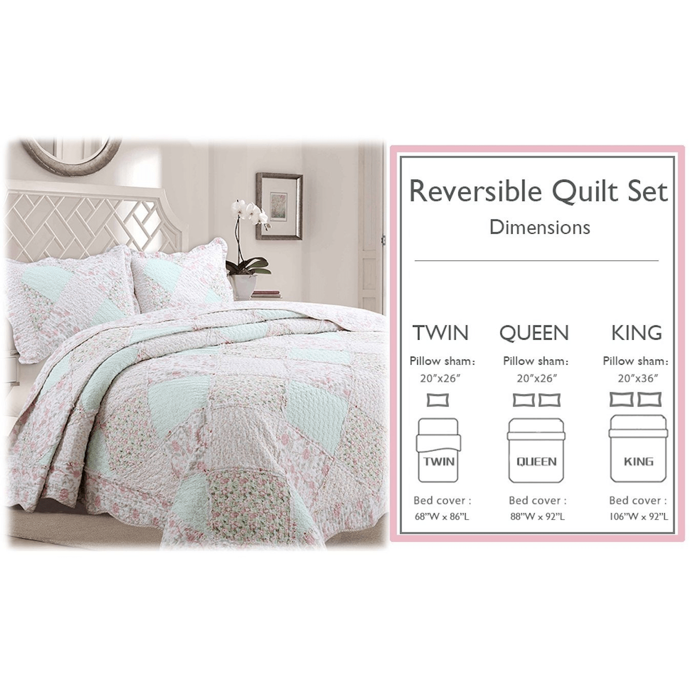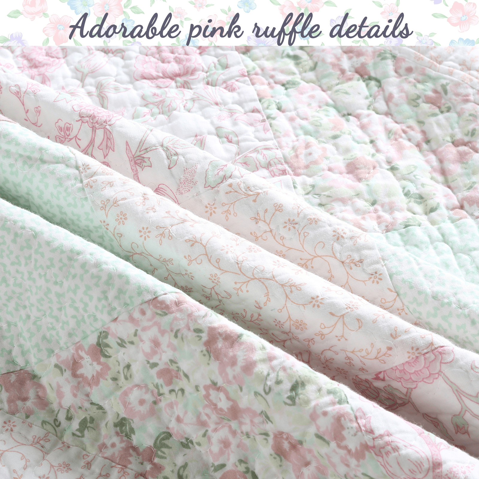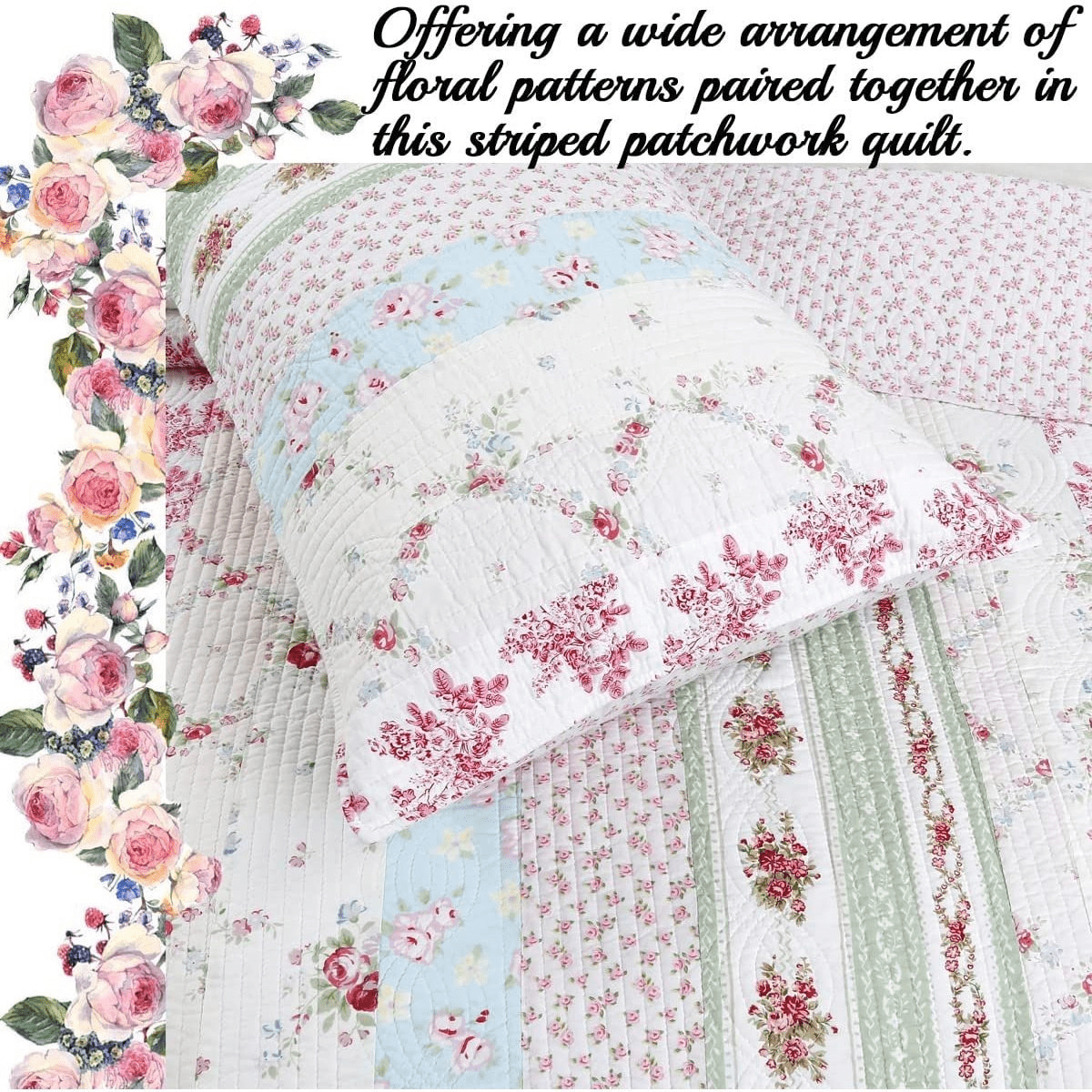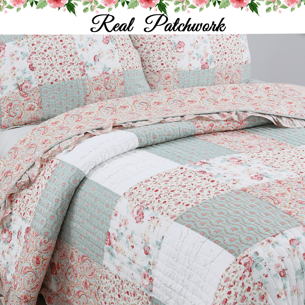 100 Cotton Hand Pieced Patchwork Pastel Floral Pink Quilt Bedding Set, Lightweight Bedspread Coverlet for All Seasons