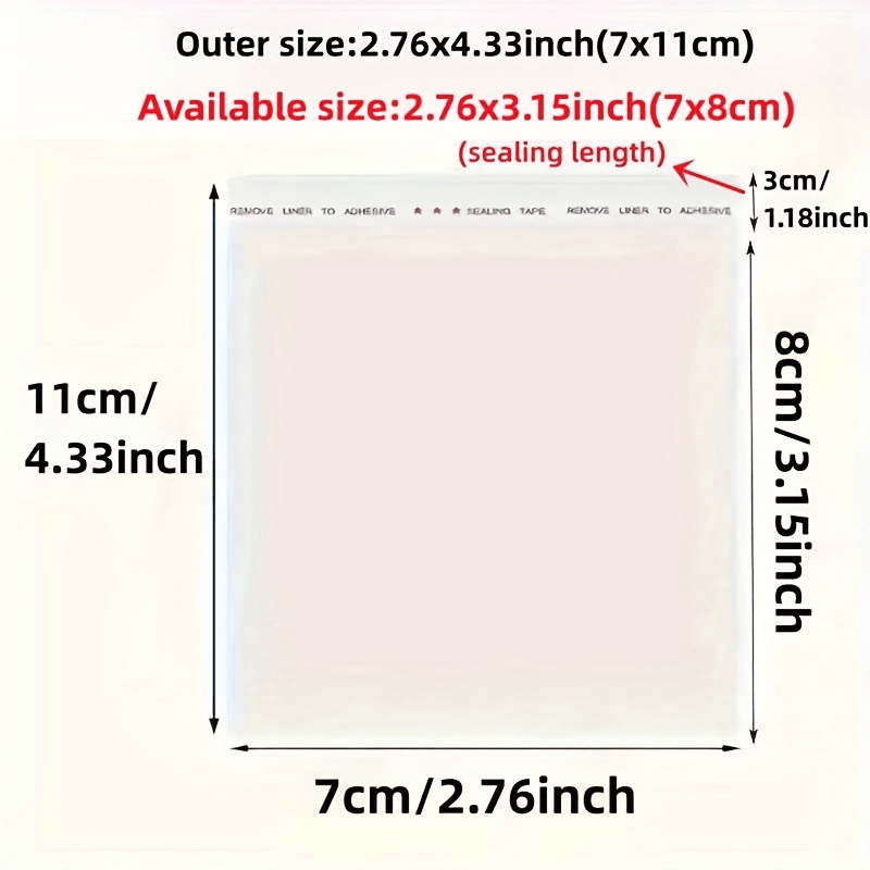 100pcs Clear Self Sealing Cellophane Bags, 3.94×5.91in, 2.76×4.33in, Clear Plastic Bags, Self Adhesive Packing Bag, Transparent OPP Bag For Gifts Eid Al-Adha Mubarak