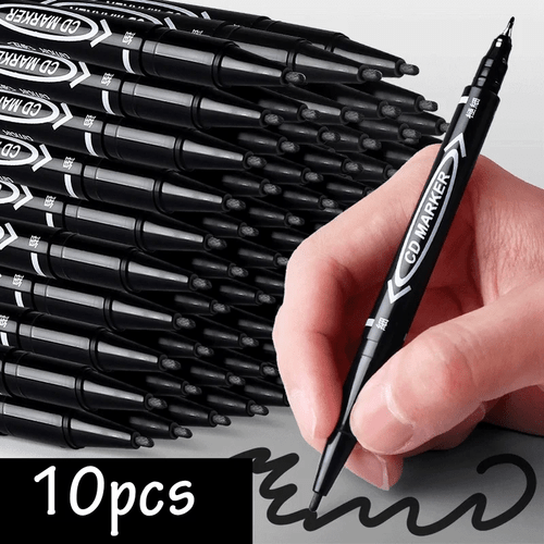 10Pcs/set Double Tip Art Black Blue ink Permanent Paint Marker Pen for