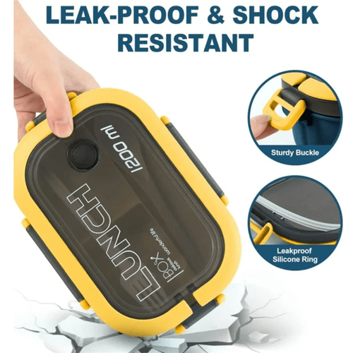 1200ML 2 Layer Bento Lunch Box With Spoon Fork, Kid High Capacity