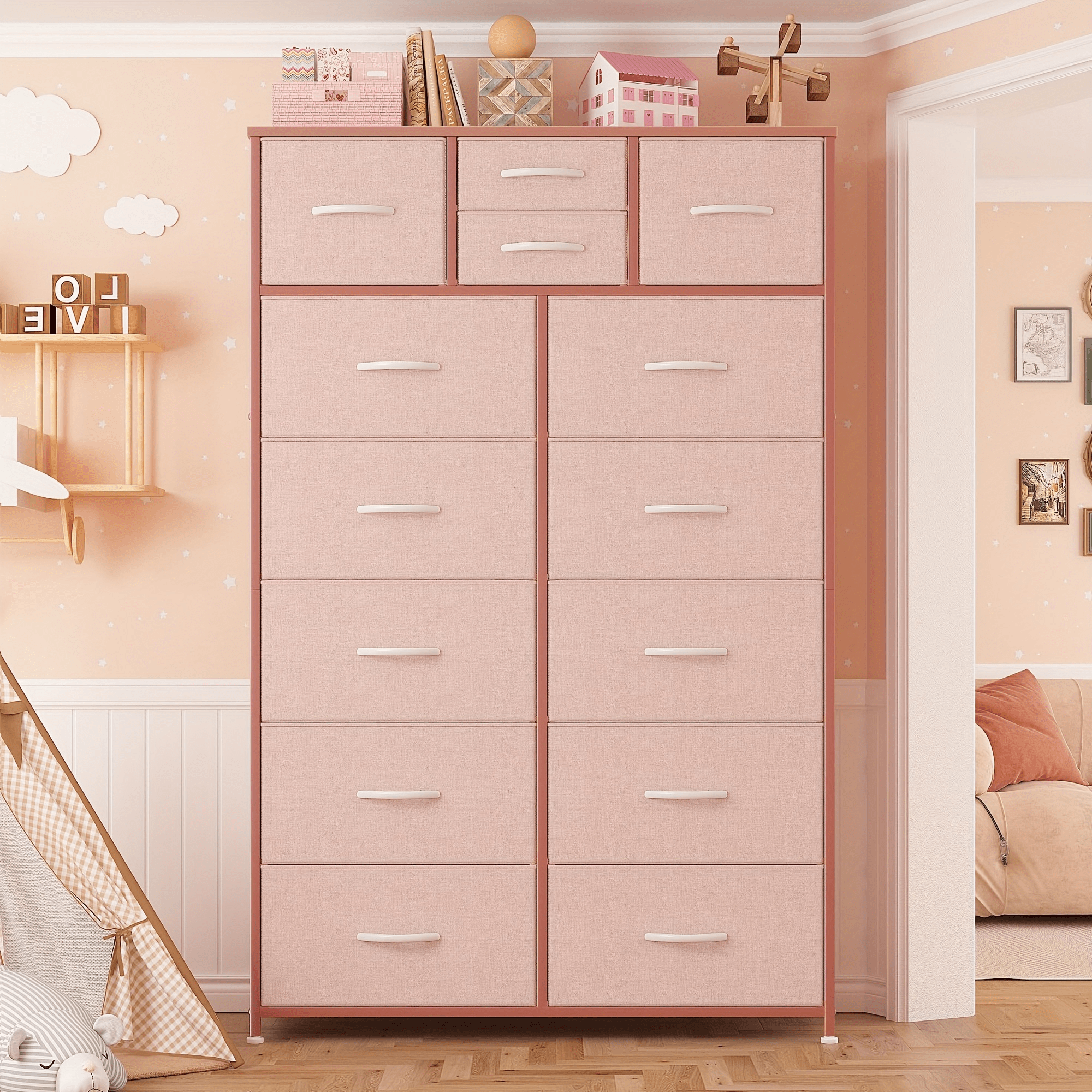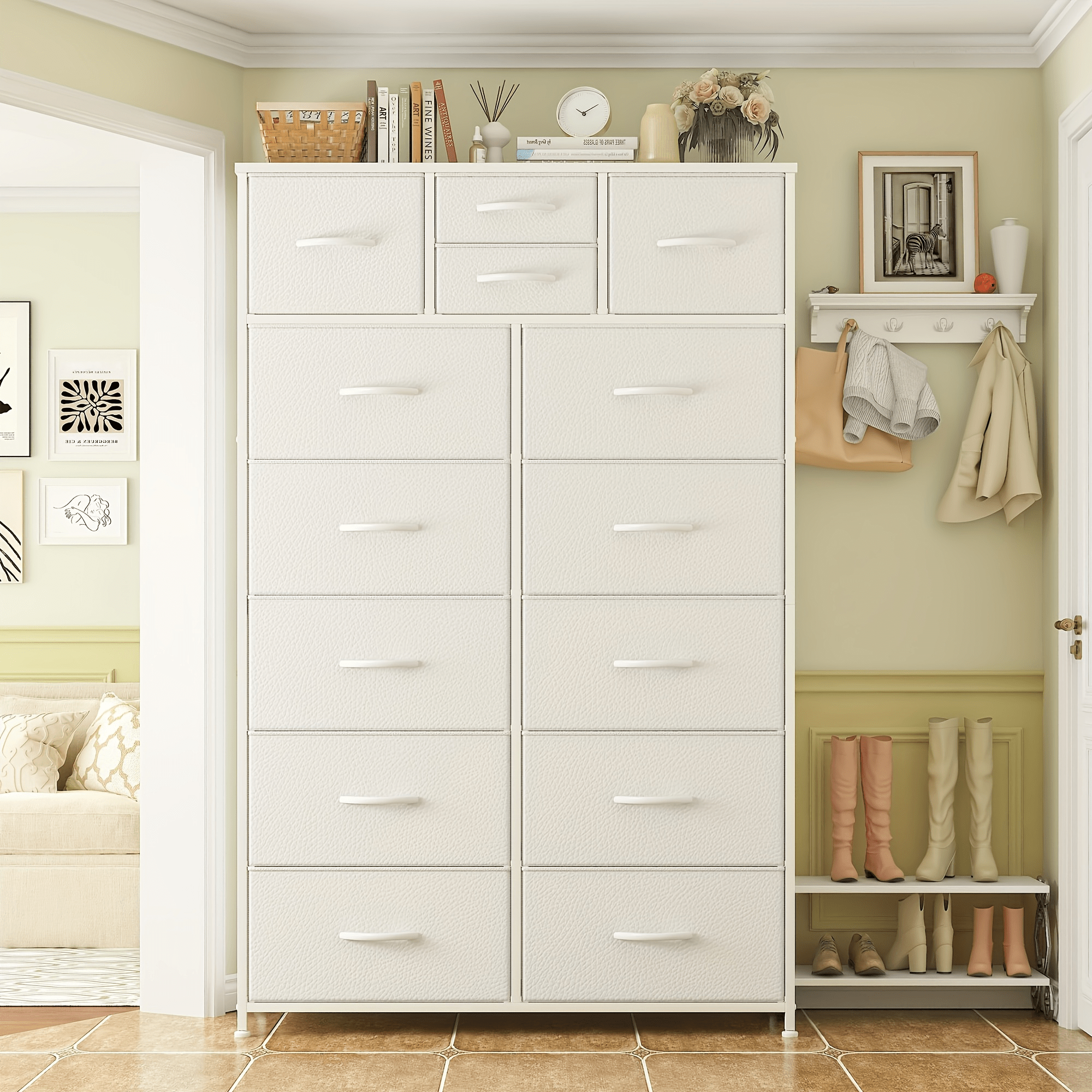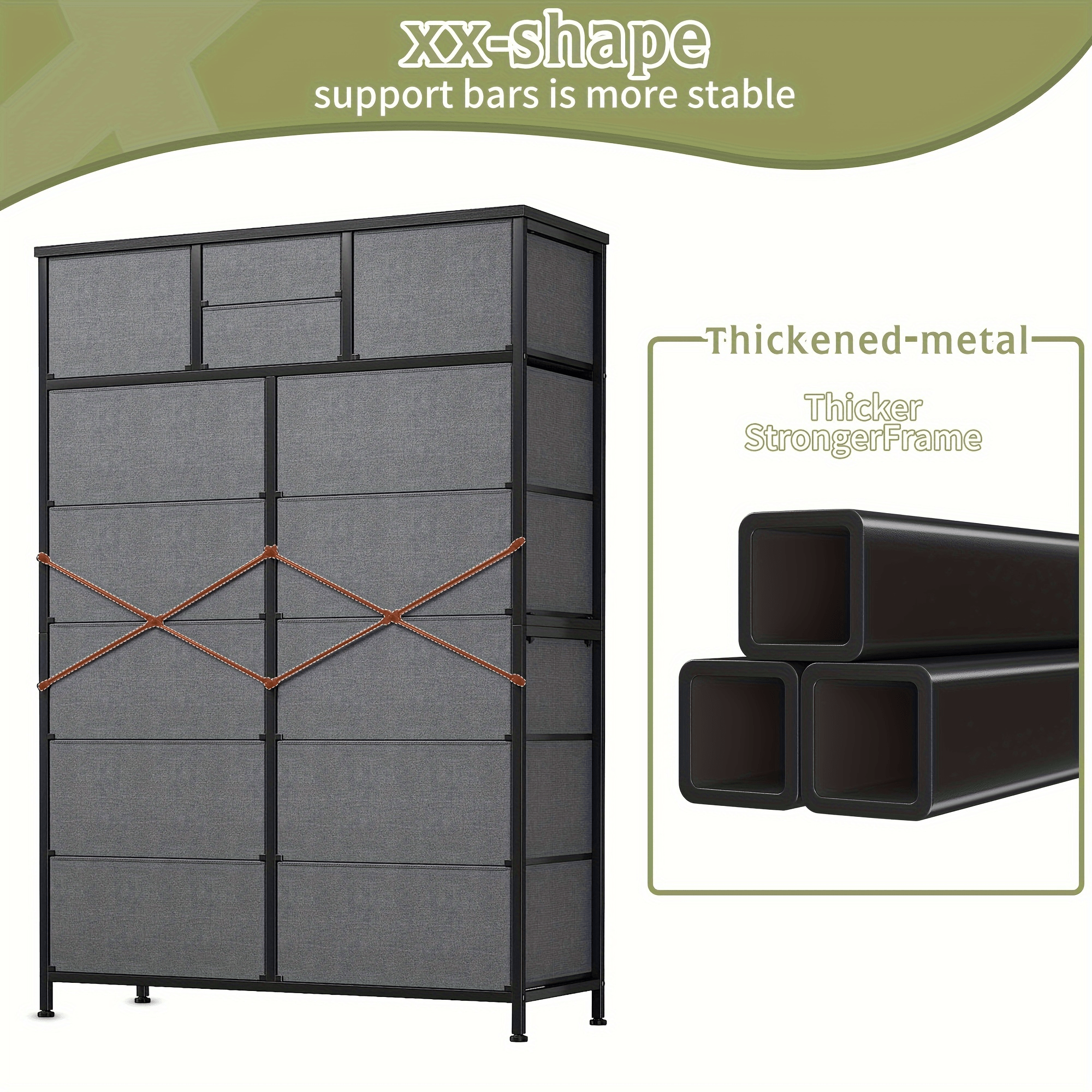 14-Drawer Tall Dresser with Metal Frame & Wood Top – 52"e; H Freestanding Storage Cabinet for Bedroom, Living Room, Entryway – Easy Assembly, No Power Needed, 11.8"e; D x 37"e; W, Tall Dresser for Bedroom, Home Organization, Contemporary Furniture, Sturdy Const