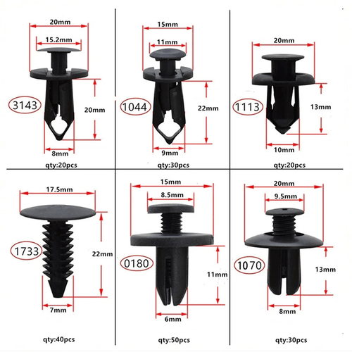 190PCS Set Car Universal Buckle 6 Models Size Fastenr Rivet Clamping Fastener Buckle Car Accessory ABS Material Fixed Screw