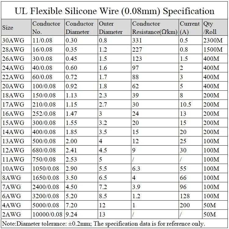 22AWG, 24AWG, 20AWG, 26AWG, 28AWG, 30AWG, 10AWG, 12AWG, 13AWG, 14AWG, 15AWG, 16AWG, 18AWG