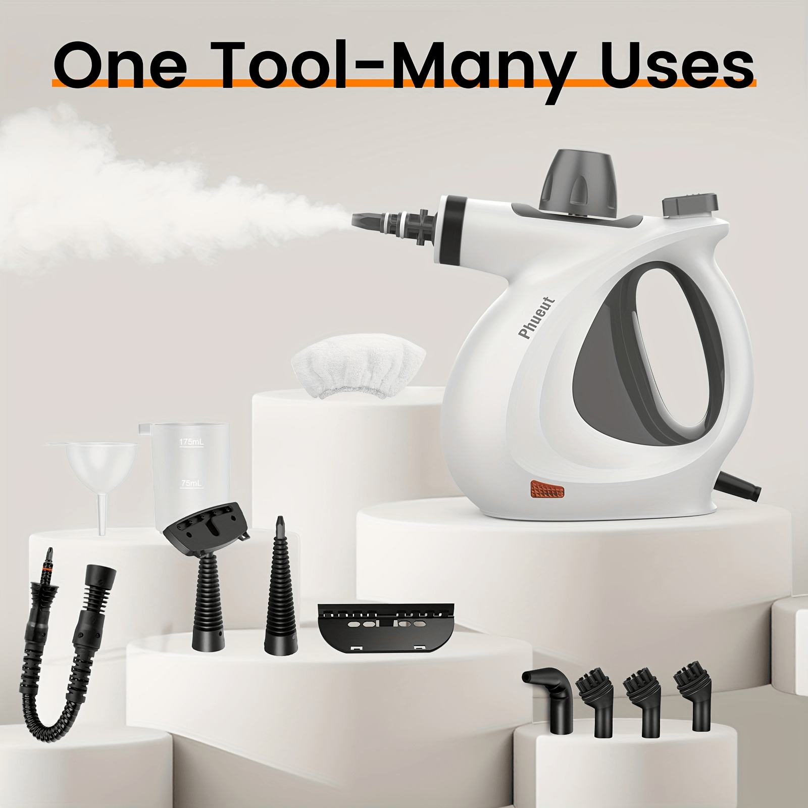 1Pc 1050W High-Power Portable Handheld Steam Cleaner Quick Heating, 12 Brush Heads For Versatile Cleaning In Kitchens, Bathrooms, Furniture & Cars – Us Plug, Large Capacity Water Tank, Steam Cleaner For Car