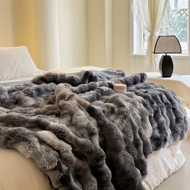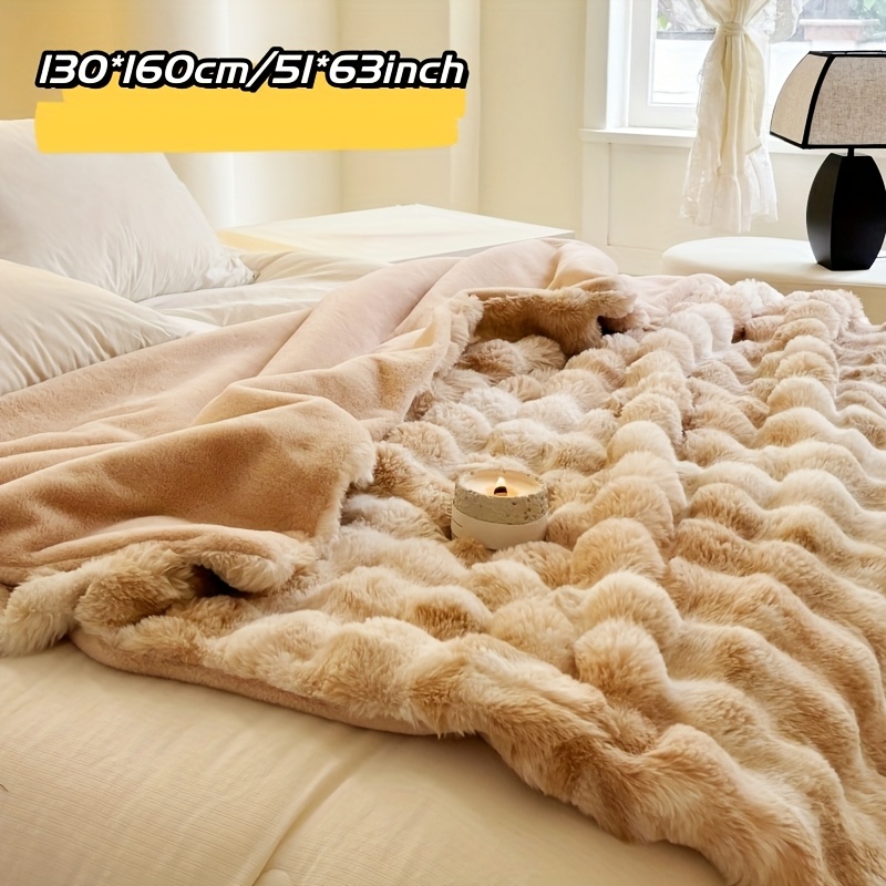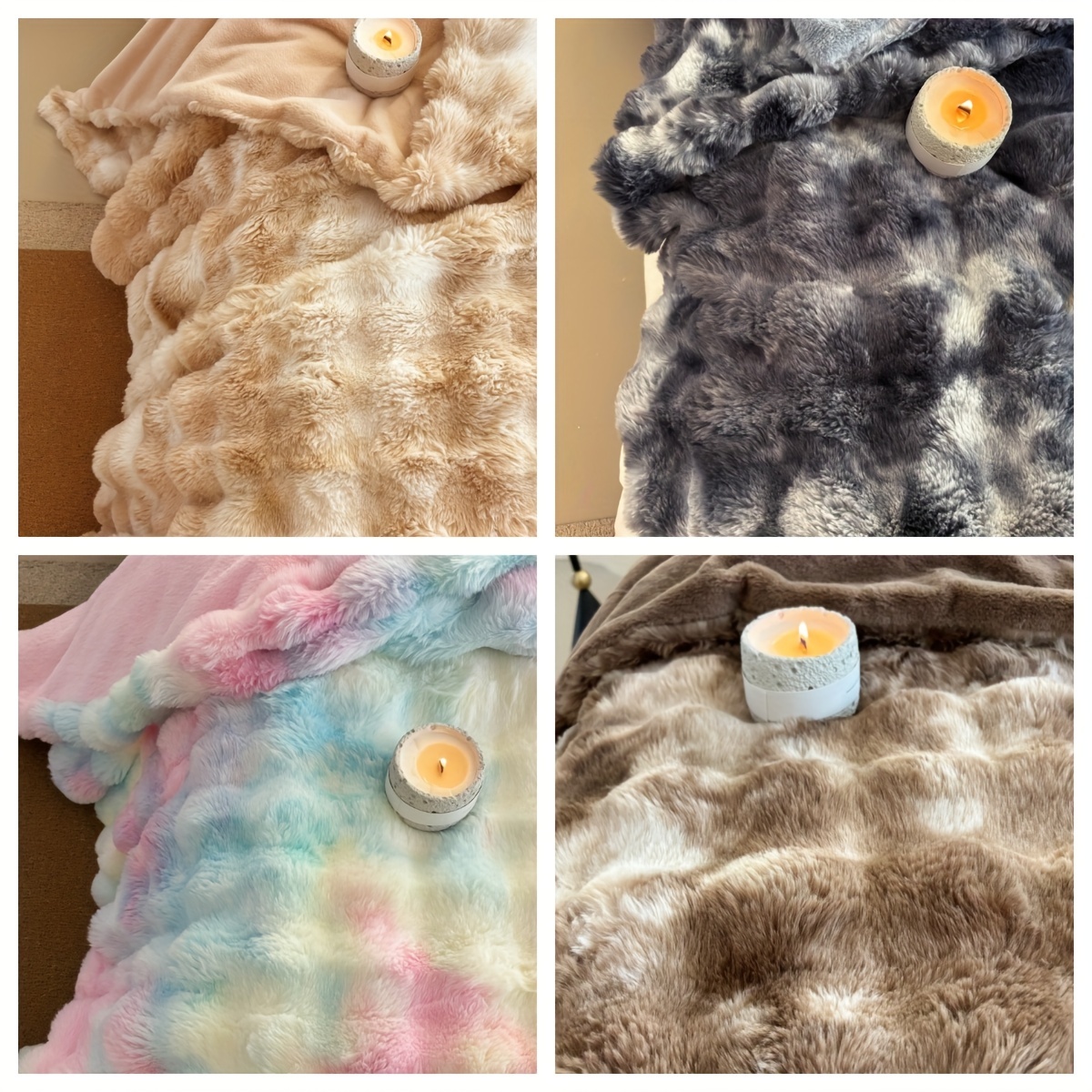 1pc Double-sided Tie-dyed Faux Rabbit Fleece Blanket, Luxurious, Comfortable and Warm, For Bedroom Guest Room Living Room Student Dormitory Car Sofa Travel, Multifunctional Blanket, For All Season.