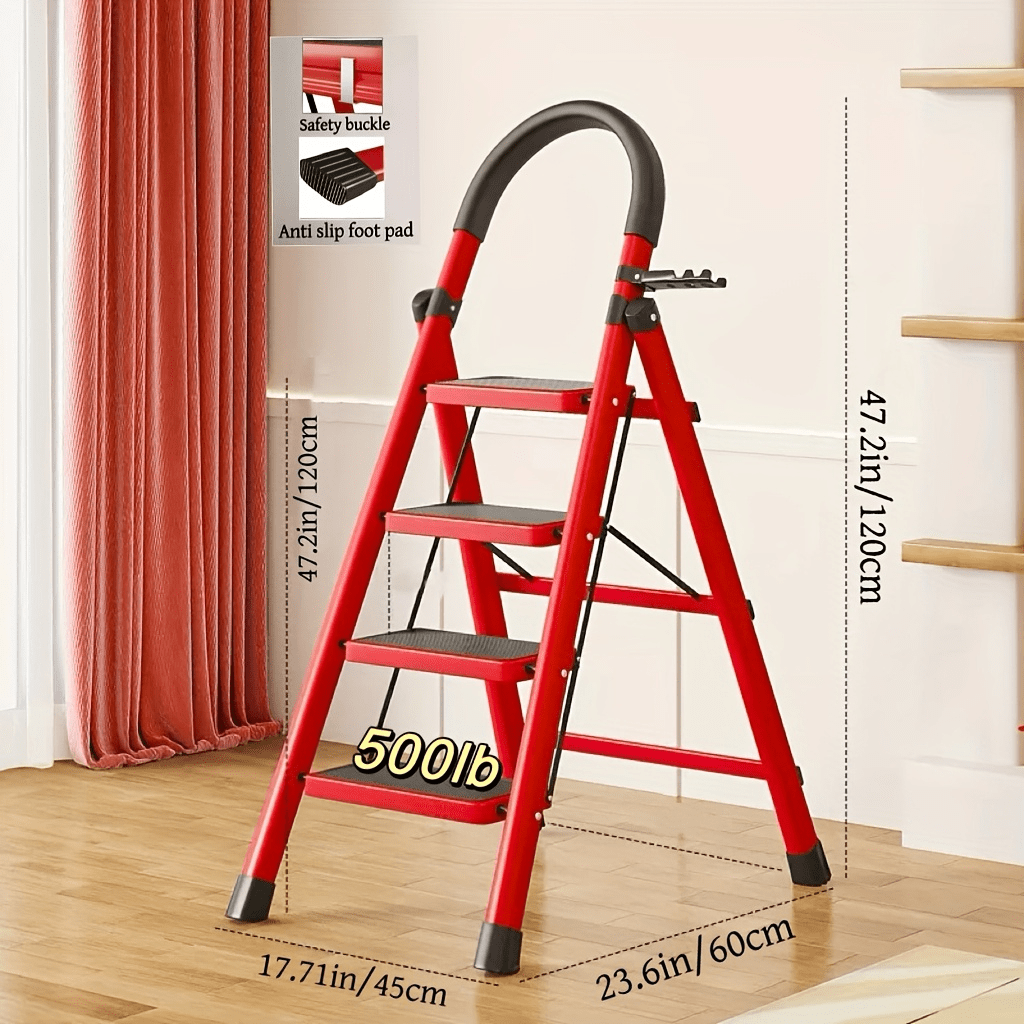 1pc Heavy-Duty 3/4/5-Step Folding Ladder 500lb Capacity, Durable Plastic with Anti-Slip Pedals, Lightweight Portable Step Stool for Household & Industrial Use, Industrial Steps, Spacesaving Steps, Highcapacity Ladder, Collapsible Ladder, Home Improvement