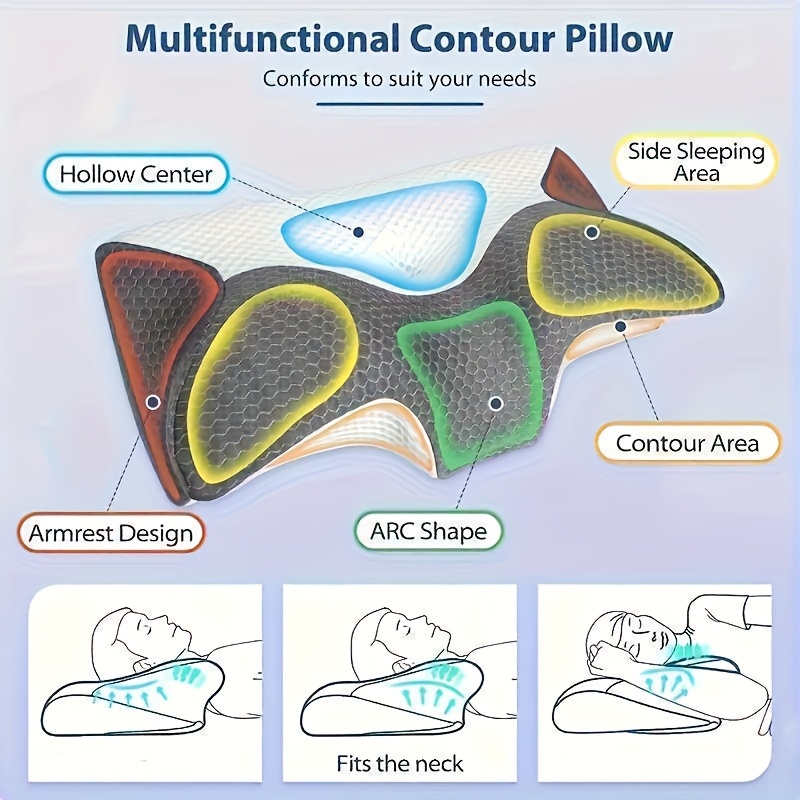 • Precision “Butterfly-Wing” Dynamics: The Cervical Pillow features a “Multi-Zone-Interface.” This “Spatial-Alignment” ensures $100\%$ “Shoulder-Clearance-Stability,” effectively eliminating the “Impingement-Friction” common in traditional rectangular pillows, ensuring a “Fixed-State-Comfort-Profile” for Side Sleepers.