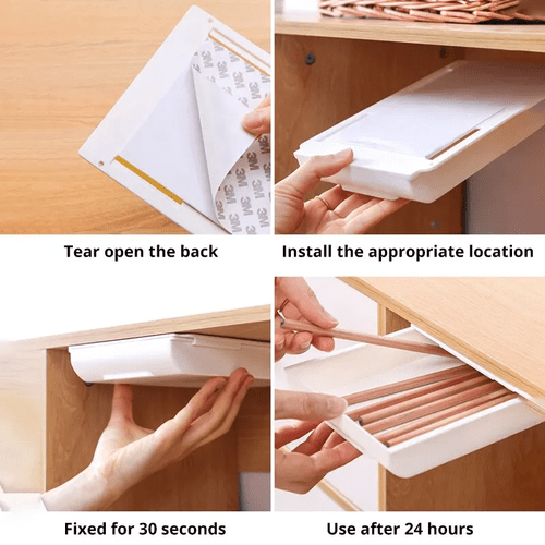 Self-adhesive design :No need for screws or brackets, simply peel and stick the drawer box onto any surface.