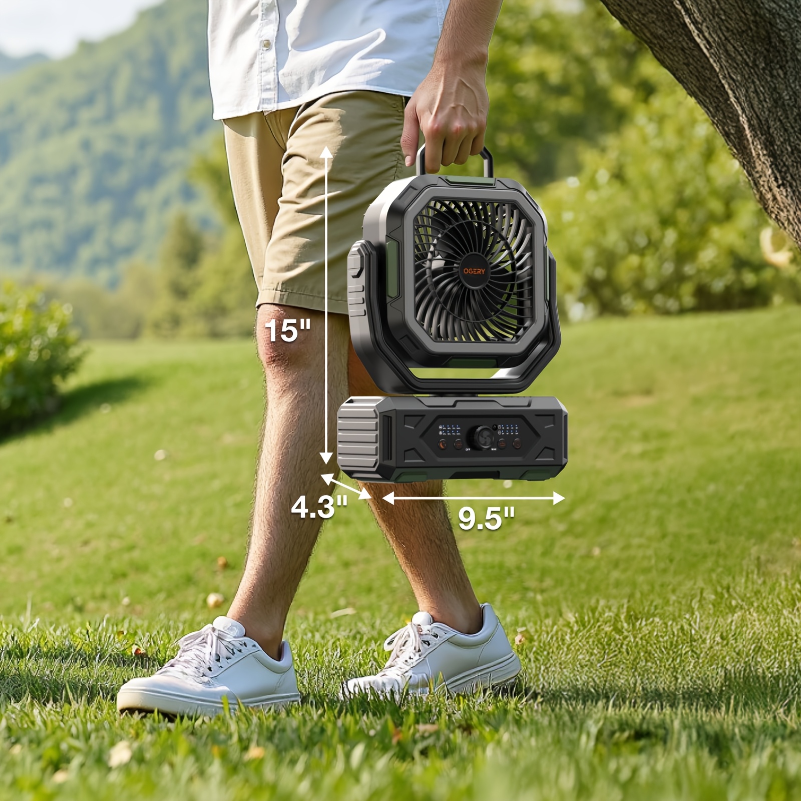 Portable Camping Fan with Remote & Timer Control for Hands-Free Operation: Enjoy seamless control with a wireless remote that adjusts fan speeds, oscillation, and sets timers (1/2/4/8 hours). This portable, fan is perfect for car camping, home use, or any travel scenario, ensuring convenience wherever you go