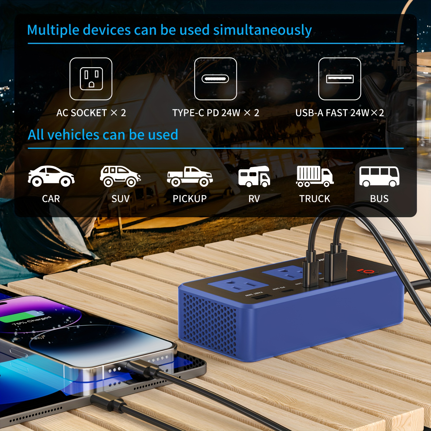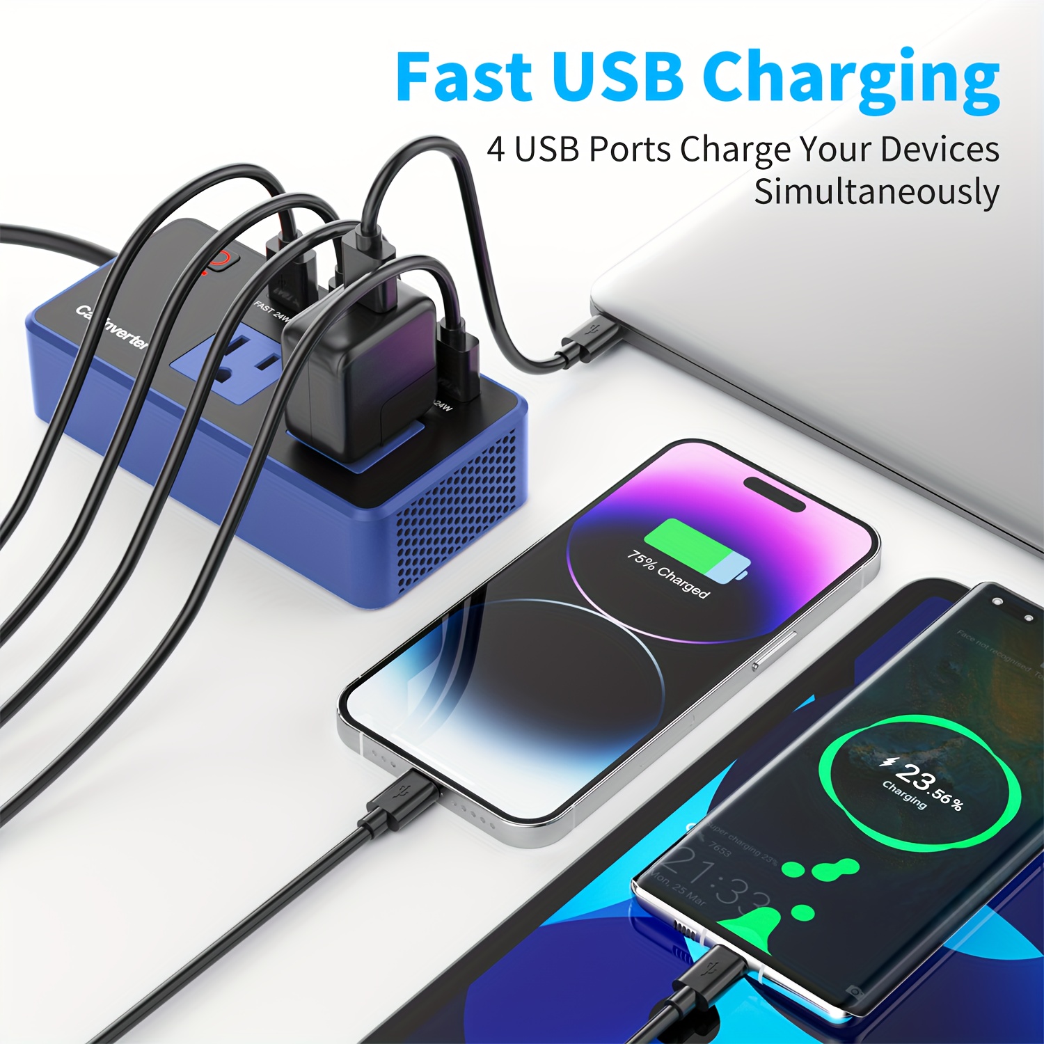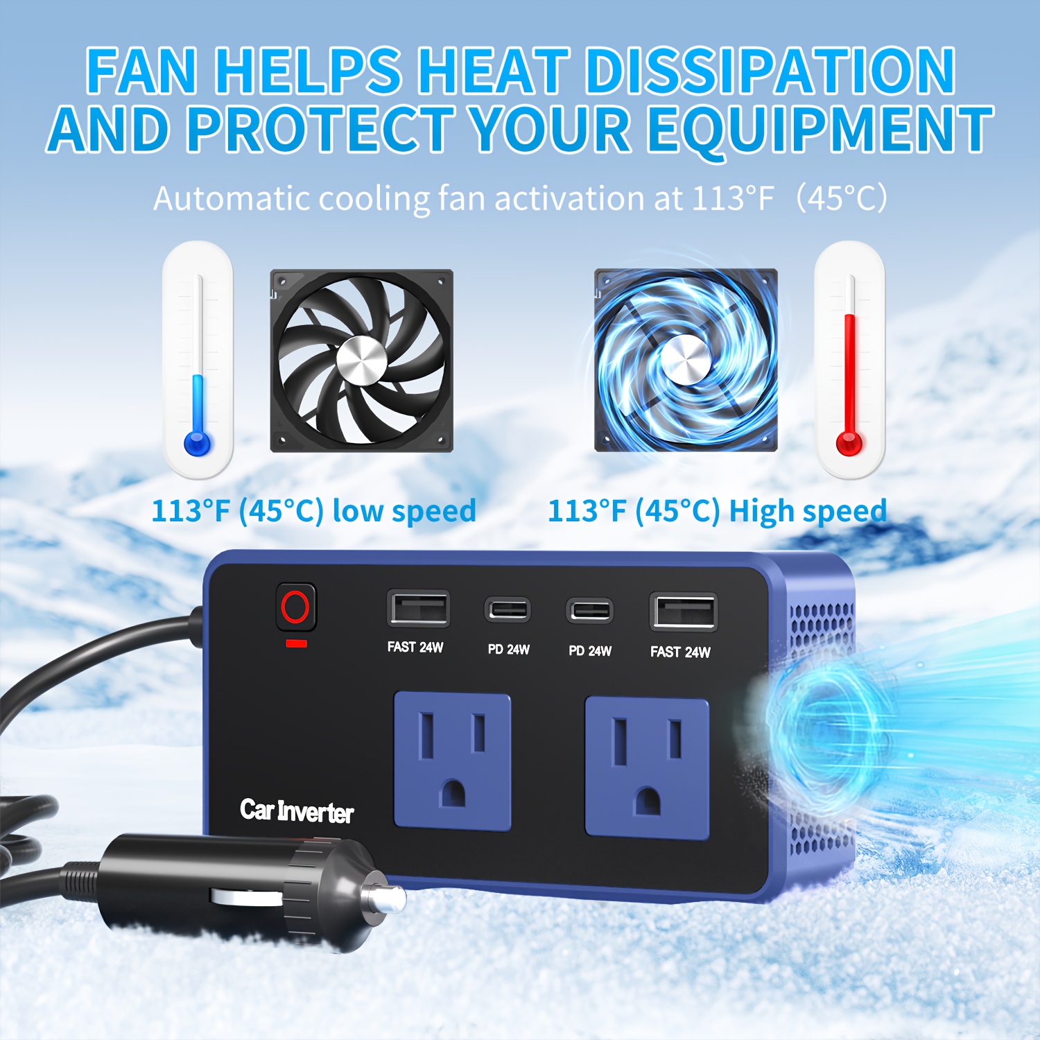 Precision “Smart-Cooling-Fan” Dynamics: The Car Power Inverter Converter features a “Temperature-Responsive-Interface.” This “Spatial-Alignment” ensures $100\%$ Portable Car Inverter Charger “Thermal-Optimization,” effectively eliminating the “Overheat-Shutdown-Friction” common in passive-cooled units.