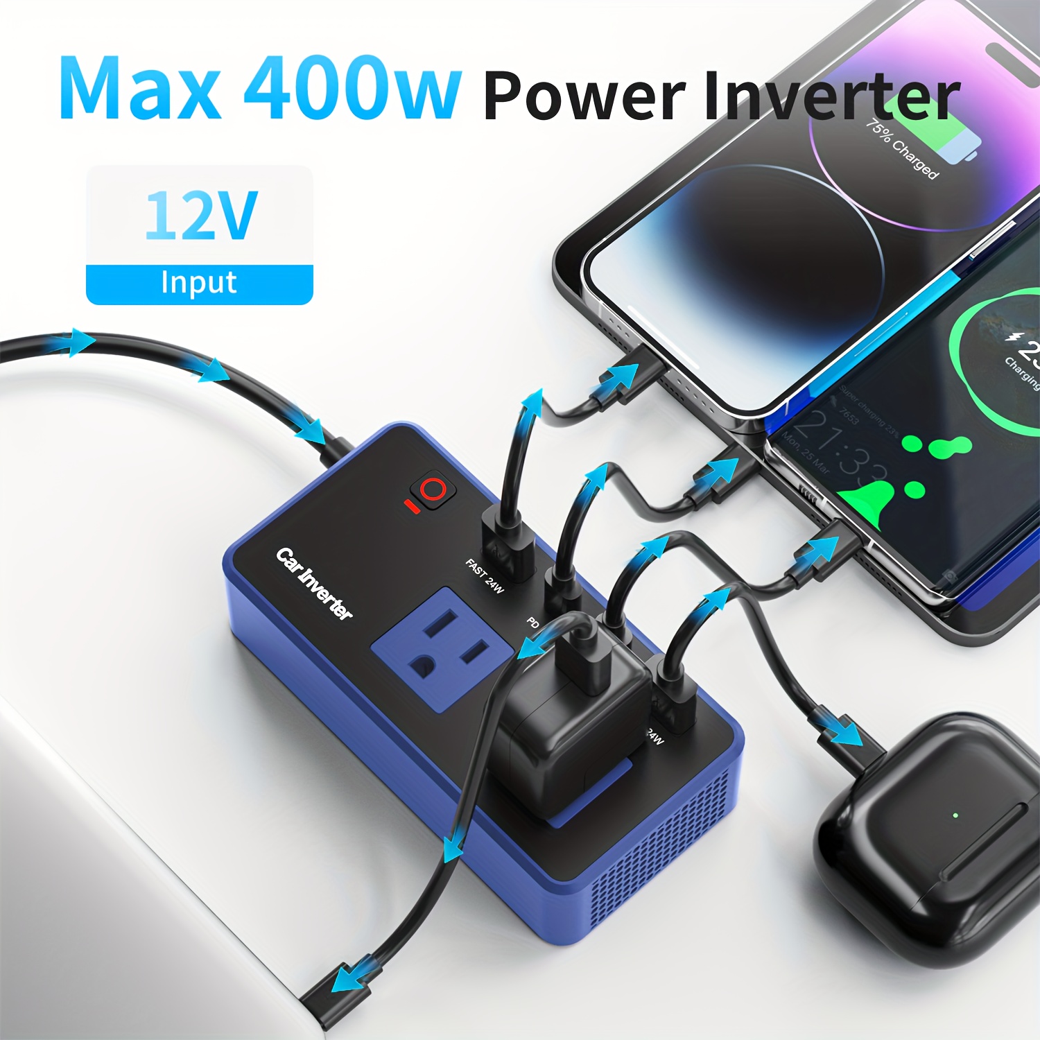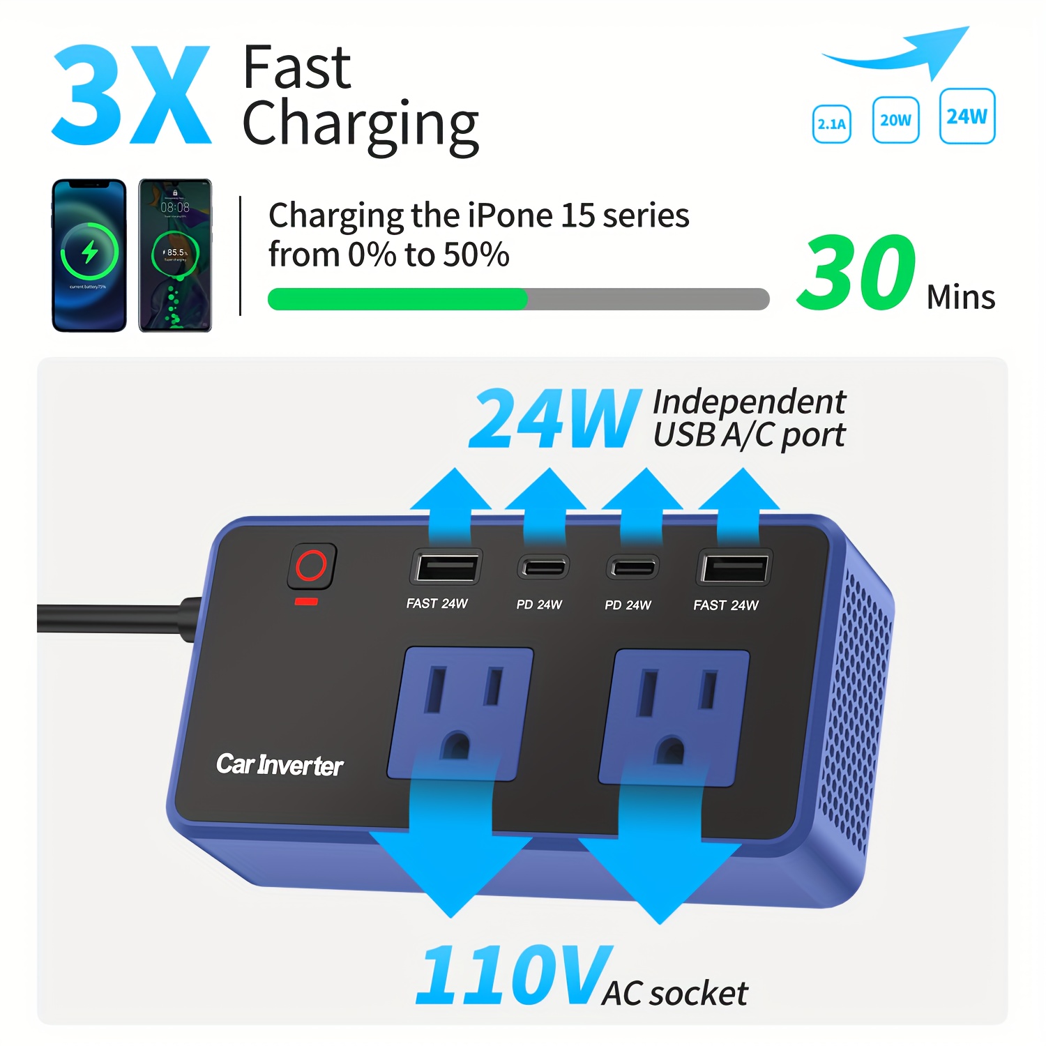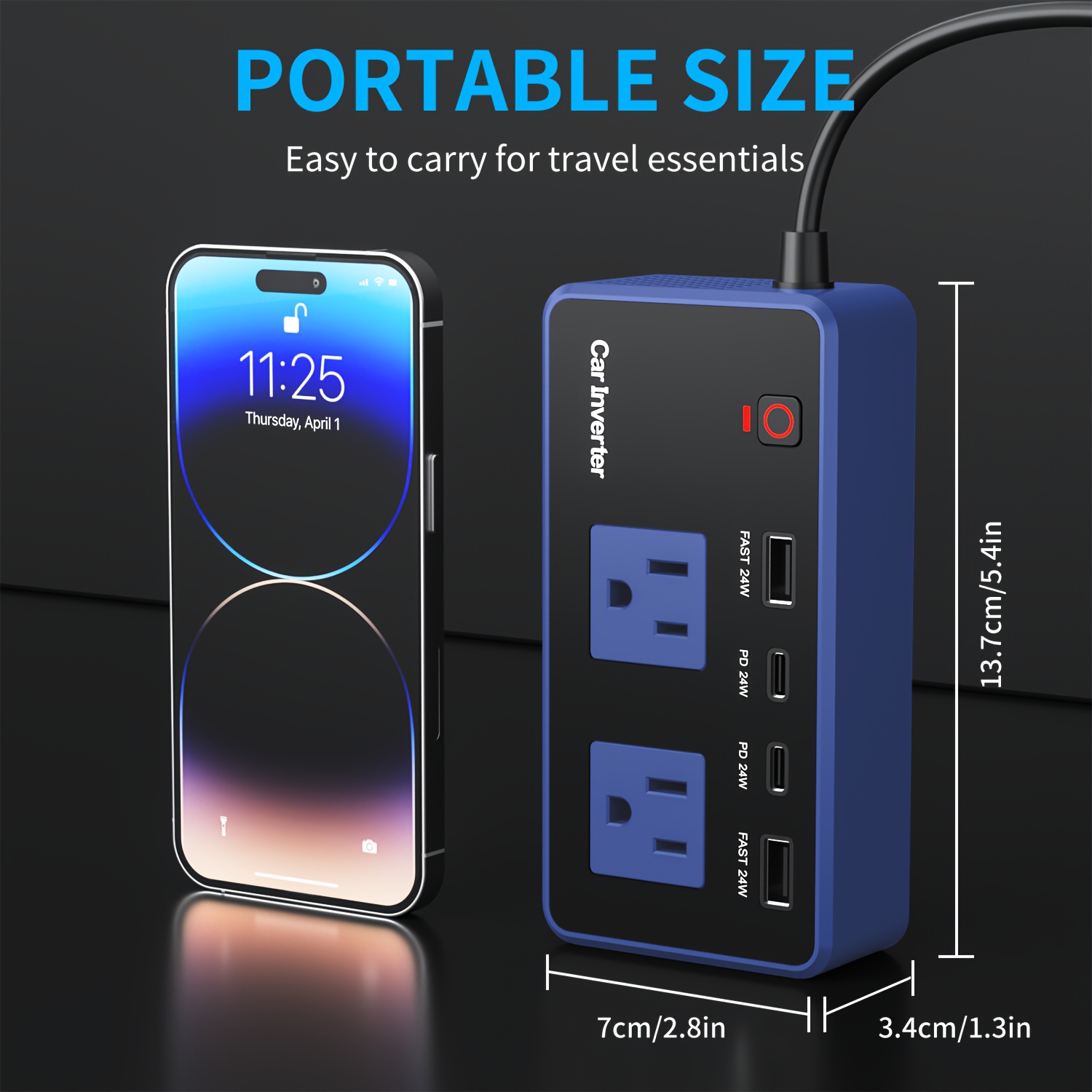 Precision “Smart-Cooling-Fan” Dynamics: The Car Power Inverter Converter features a “Temperature-Responsive-Interface.” This “Spatial-Alignment” ensures $100\%$ Portable Car Inverter Charger “Thermal-Optimization,” effectively eliminating the “Overheat-Shutdown-Friction” common in passive-cooled units.