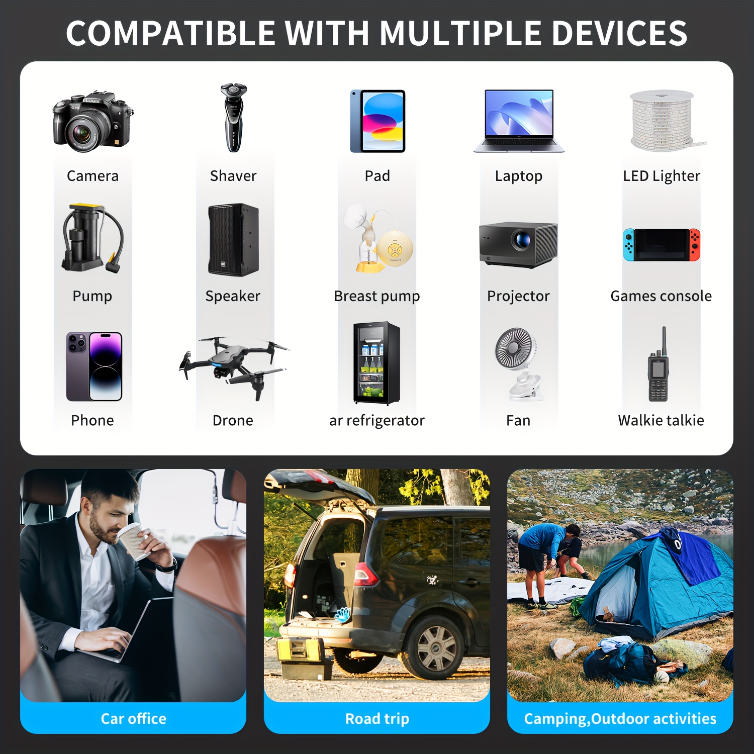 Integrated “DC 12V to 110V AC” Matrix: The internal transformer is meticulously calibrated for stable alternating-current output. This “Structural-Inertia” ensures $100\%$ “Power-Delivery-Stability,” effectively neutralizing the “Voltage-Sag-Coefficient” common in low-grade converters, providing a professional-grade “Energy-Standard” for laptops and mobile devices.
