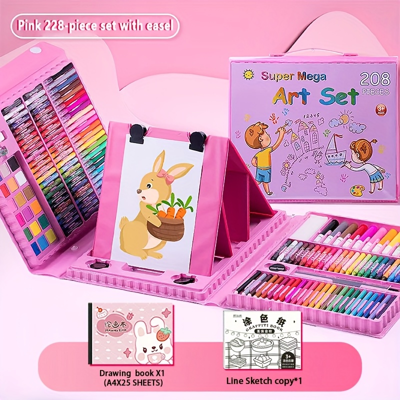 228pcs Children's Drawing Set with Drawing Board, Colored Pencils, Watercolors, Oil Pastels, Crayons, Pencils, Erasers, Drawing Books, Acrylic Markers, Color Coloring Books Fine Art Beginner Drawing Set Drawing Supplies for Children 3-10 Years Old Birthda