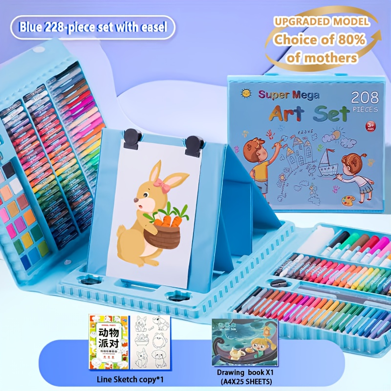 228pcs Children's Drawing Set with Drawing Board, Colored Pencils, Watercolors, Oil Pastels, Crayons, Pencils, Erasers, Drawing Books, Acrylic Markers, Color Coloring Books Fine Art Beginner Drawing Set Drawing Supplies for Children 3-10 Years Old Birthda