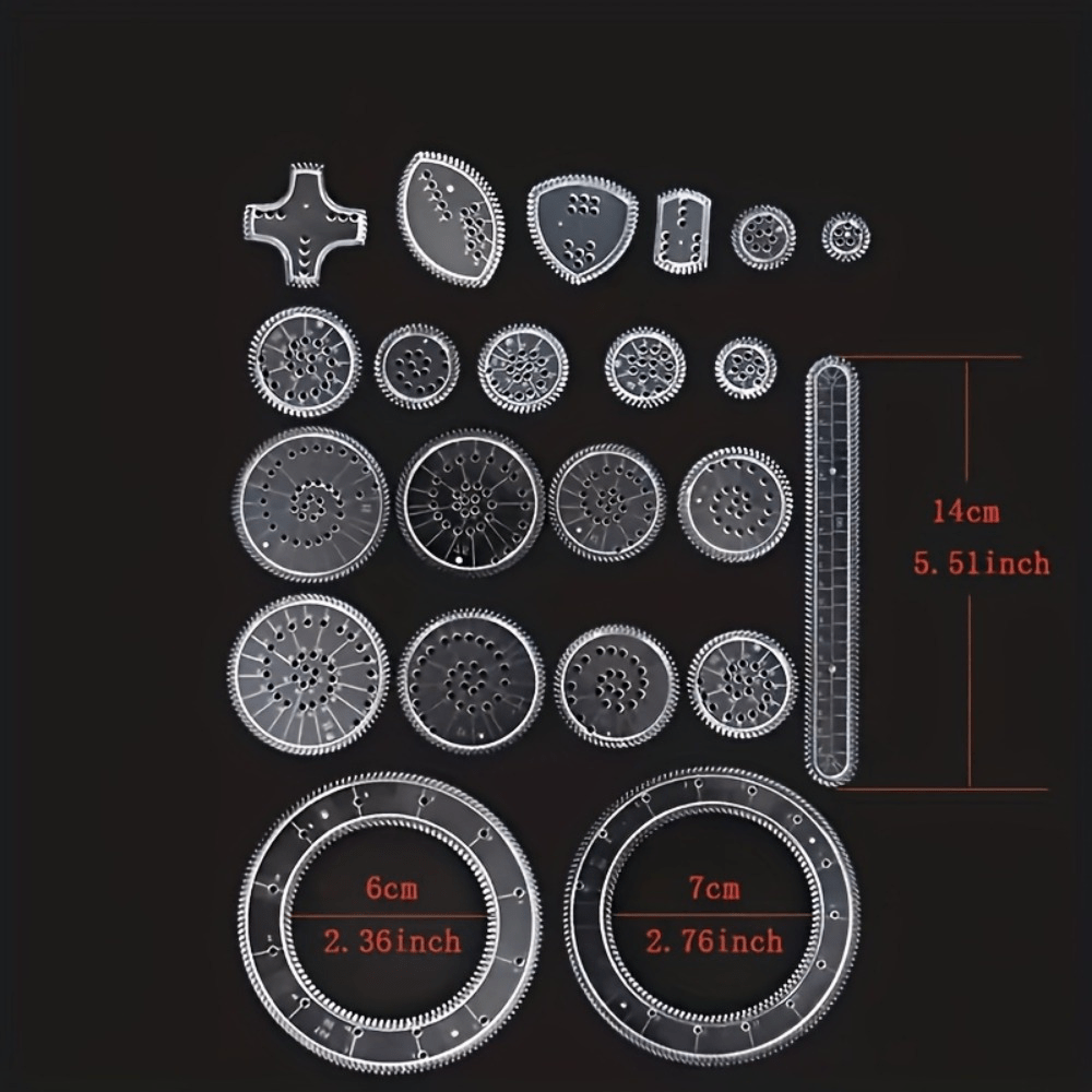 22pcs/set, Multifunctional Ruler, Transparent Magic Template to Create Stunning Spiral Diagrams, Draw Various Patterns You Want, Multifunctional Geometric Drawing Ruler, Magical Drawing Set