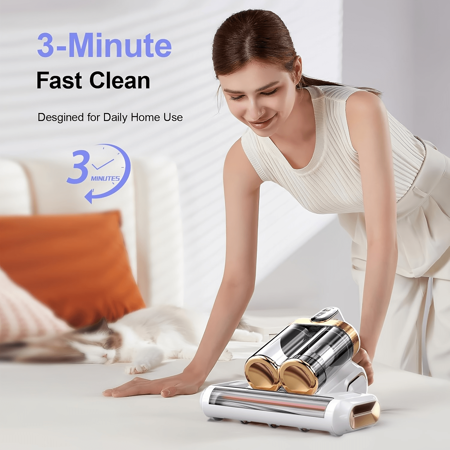 3-minute fast charging cordless mattress vacuum cleaner, 18Kpa suction power, 253.7nm UV light and 80, 000 RPM sonic technology, portable double cup handheld USB rechargeable, suitable for beds, fabric sofas, carpets, cordless vacuum cleaner, bed and