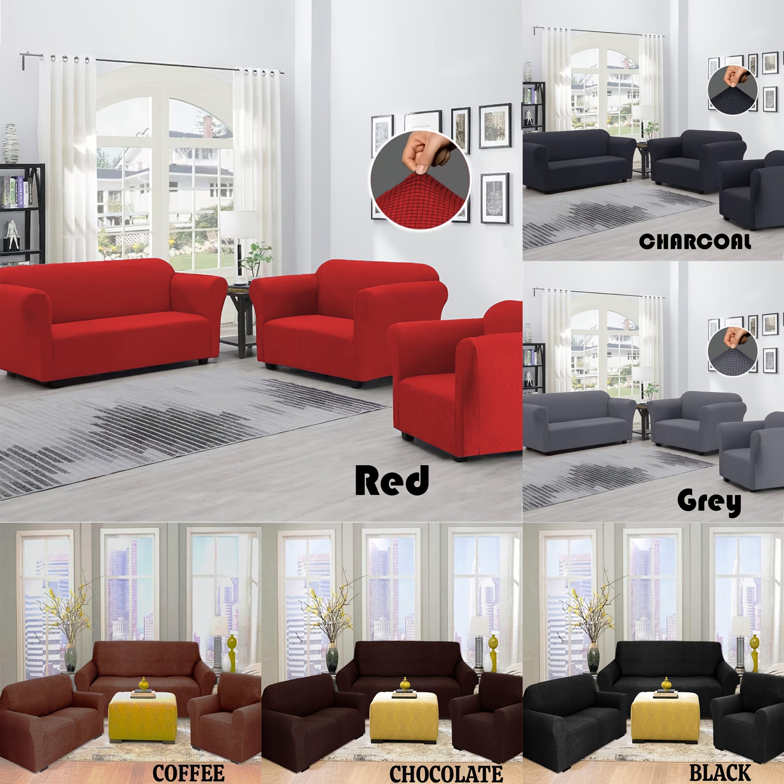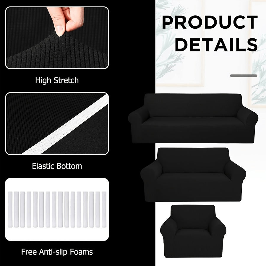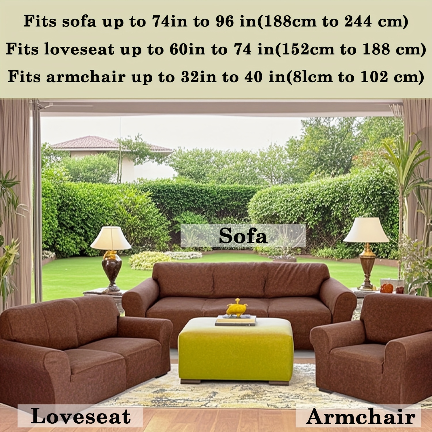 3-Pc Stretch Sofa Cover Set with Armchair Protectors – Anti-Slip Elastic Furniture Covers Polyester-Spandex Blend Light Beige-Friendly Full Coverage for Couches/Chairs Wrinkle-Resistant & Machine Washable Gift for Mom & Dad Local Warehouse Summer