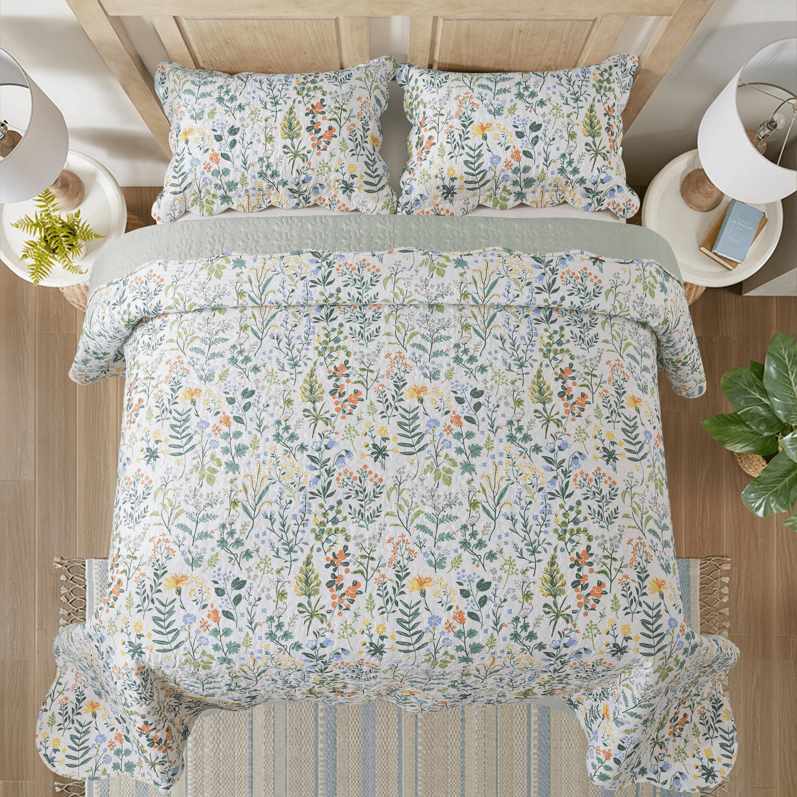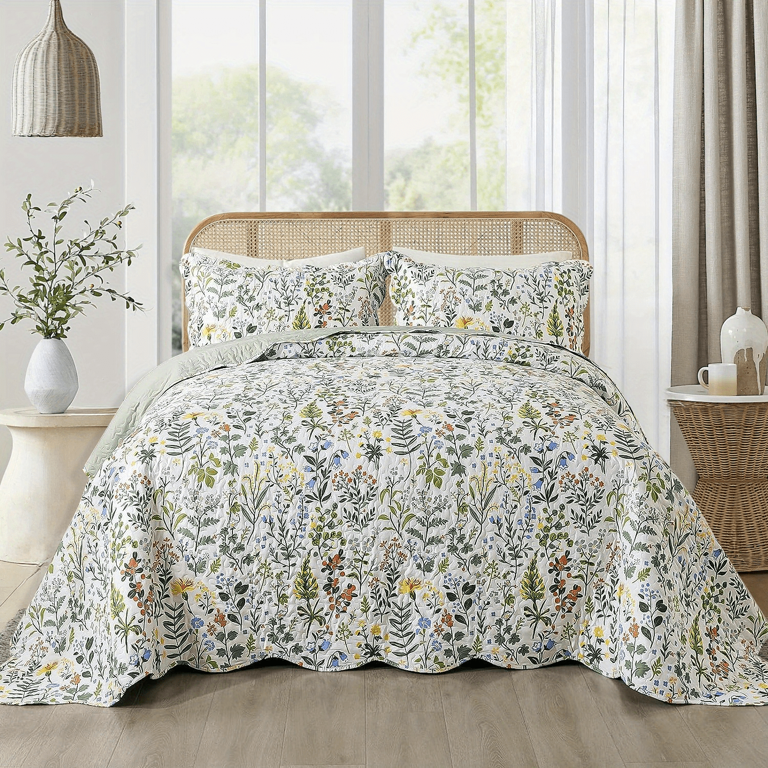 3 Pcs Quilt Set Quilted Bedspread Lightweight Coverlet Set Garden Style Floral Printed Oversized Quilted Bedding Set with Shams for All Season, Exquisite, Queen Size, King Size, Super King Size
