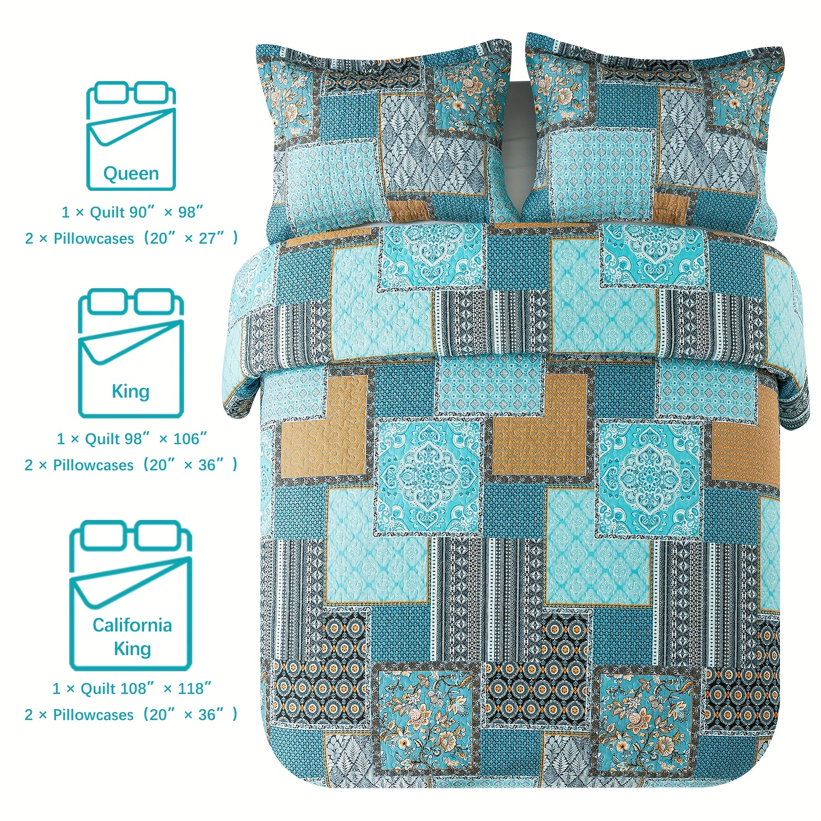 3pcs Cotton Quilt, Lightweight Bedspread For Home Decor, Teal Comforter Set, Summer Quilted Coverlets Quilt Bedding Sets For Bed Decorations For All Seasons