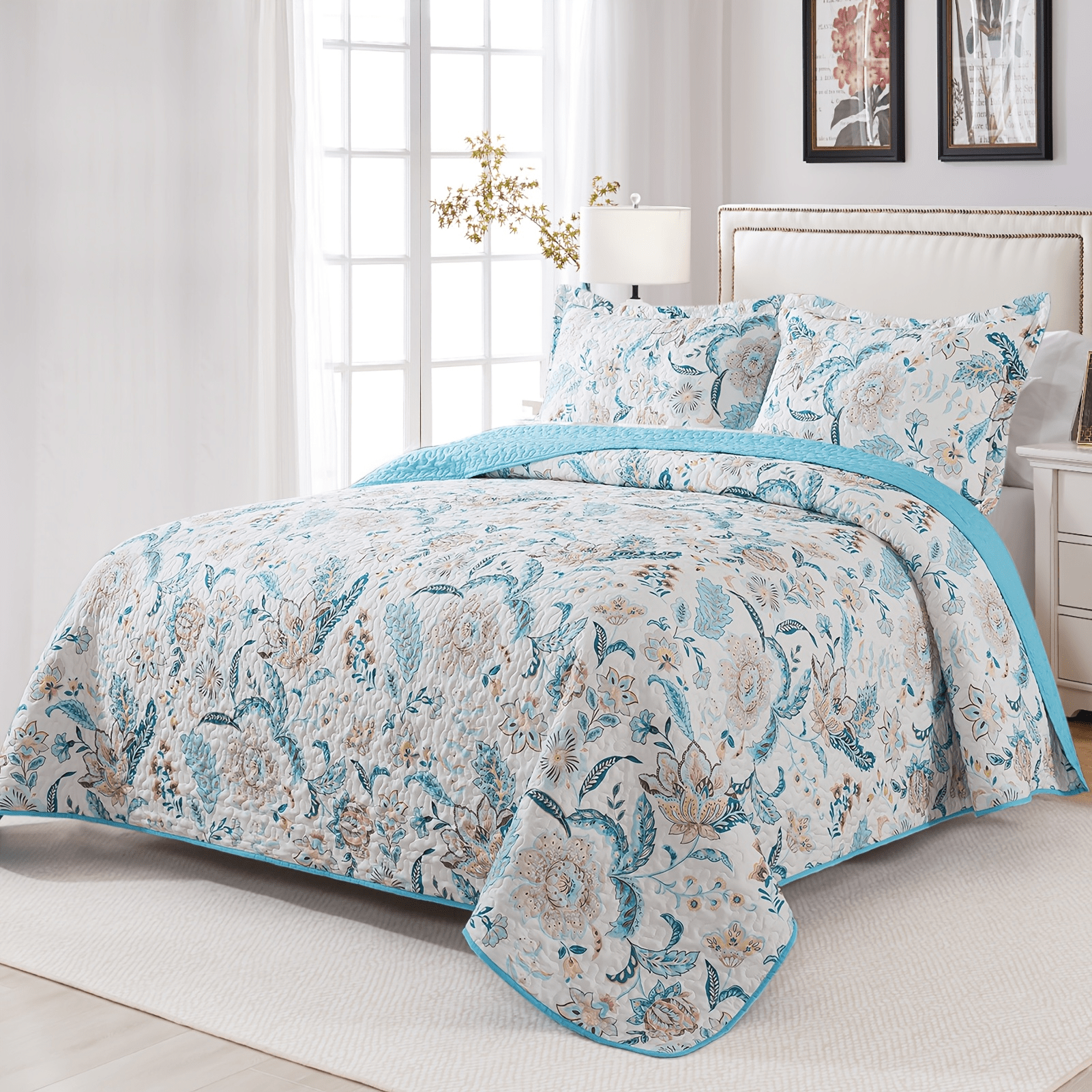 3pcs Farmhouse Quilt Bedding Set – Lightweight Bedspreads with Colorful Floral Pattern – Mothers Day Gifts – Garden Full Queen King Quilt Bedding Sets for Bed Coverlet