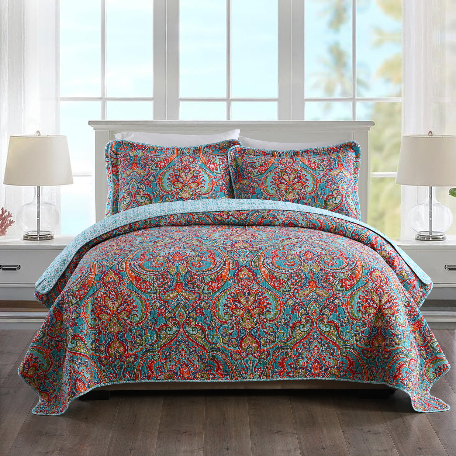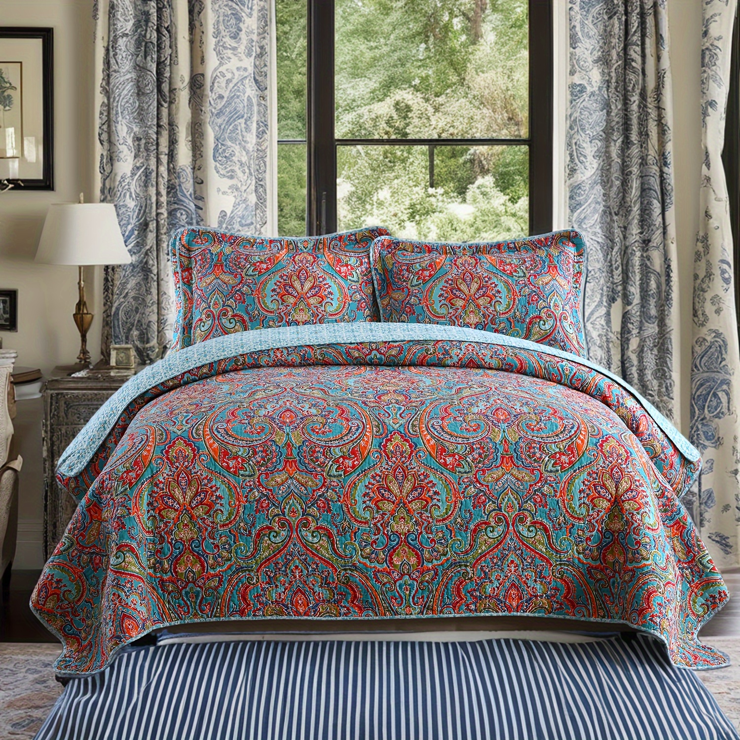 3pcs Fire-burning floating cloud red, 100% pure Cotton filling and microfiber cover quilting production, taking into account the breathable and comfortable quality, master-level handmade craftsmanship, three-piece family quilt suitable for gifts and