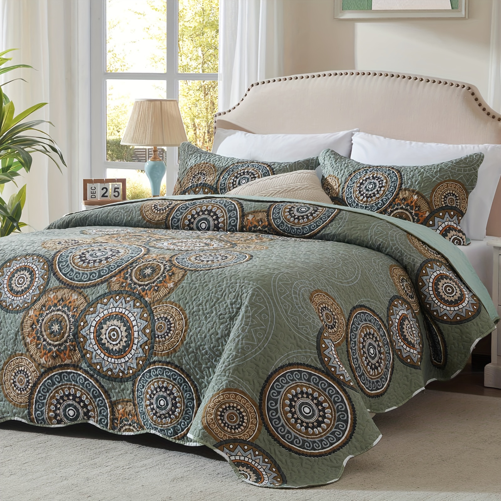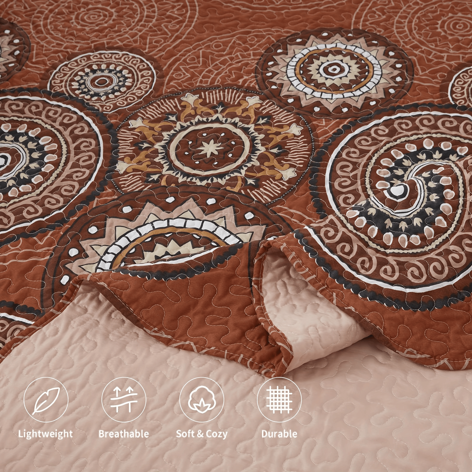 3pcs Queen/King Size Burnt Orange Rust/Olive Green/Grey Quilt Set Lightweight Oversized Bedspread, Soft Microfiber Floral Coverlet Luxurious Warm Bed Cover For All Seasons 1 Quilt, 2 Pillow Shams