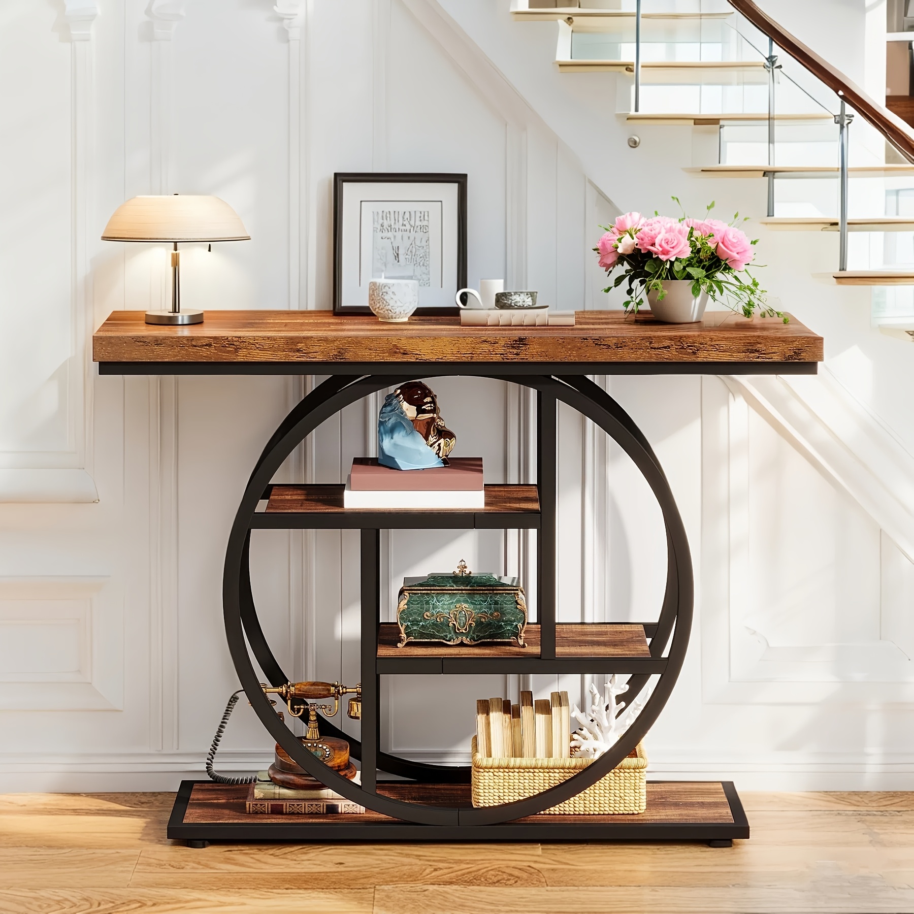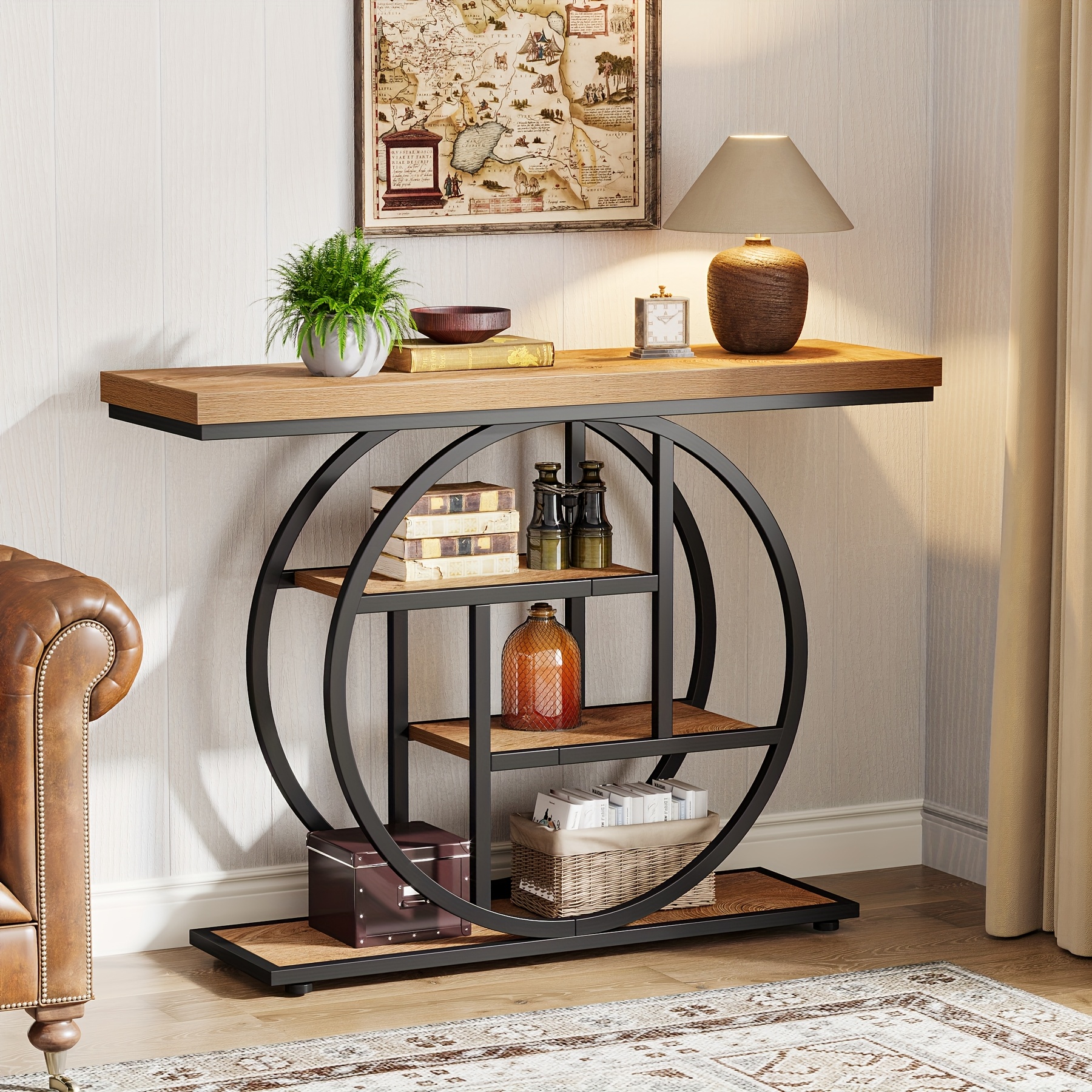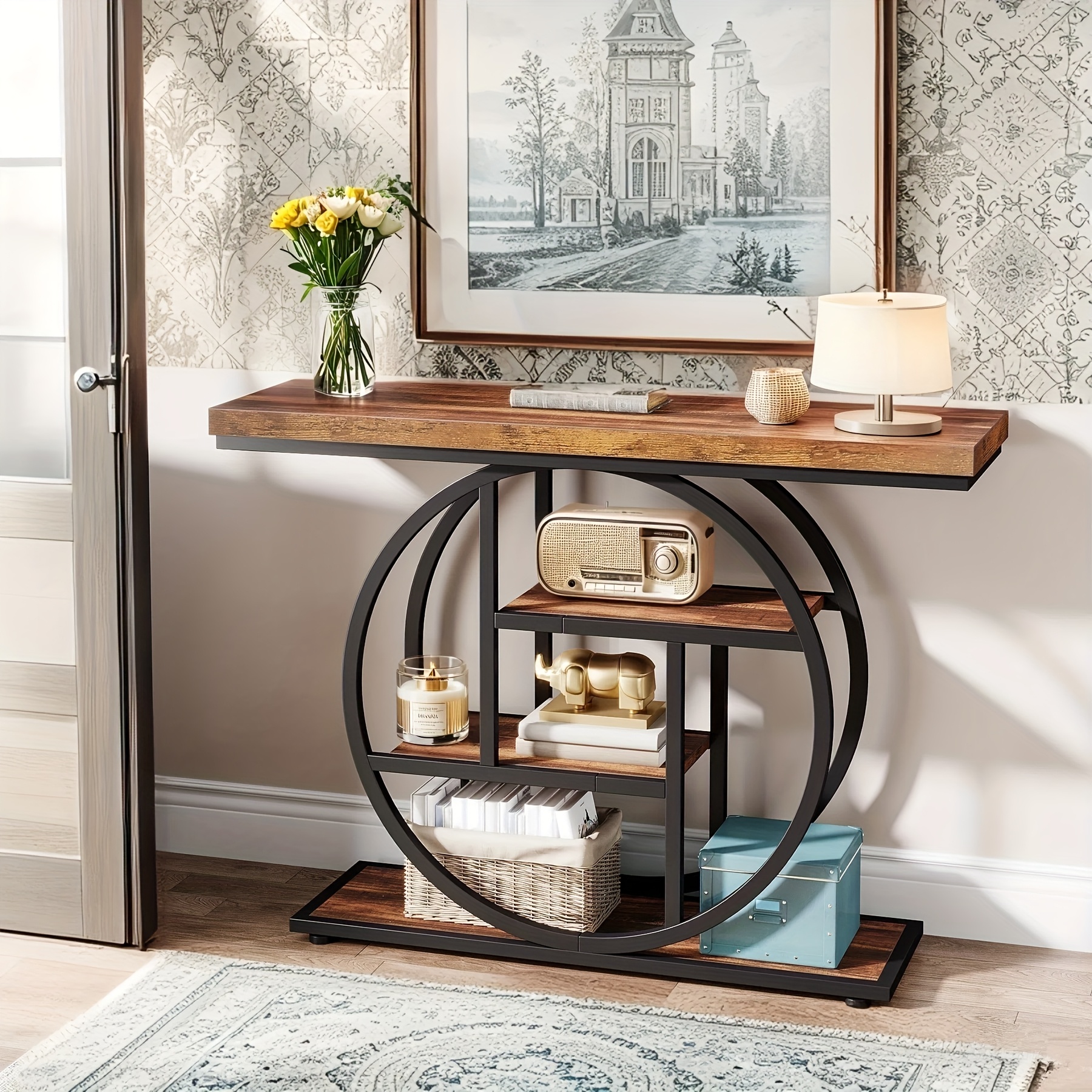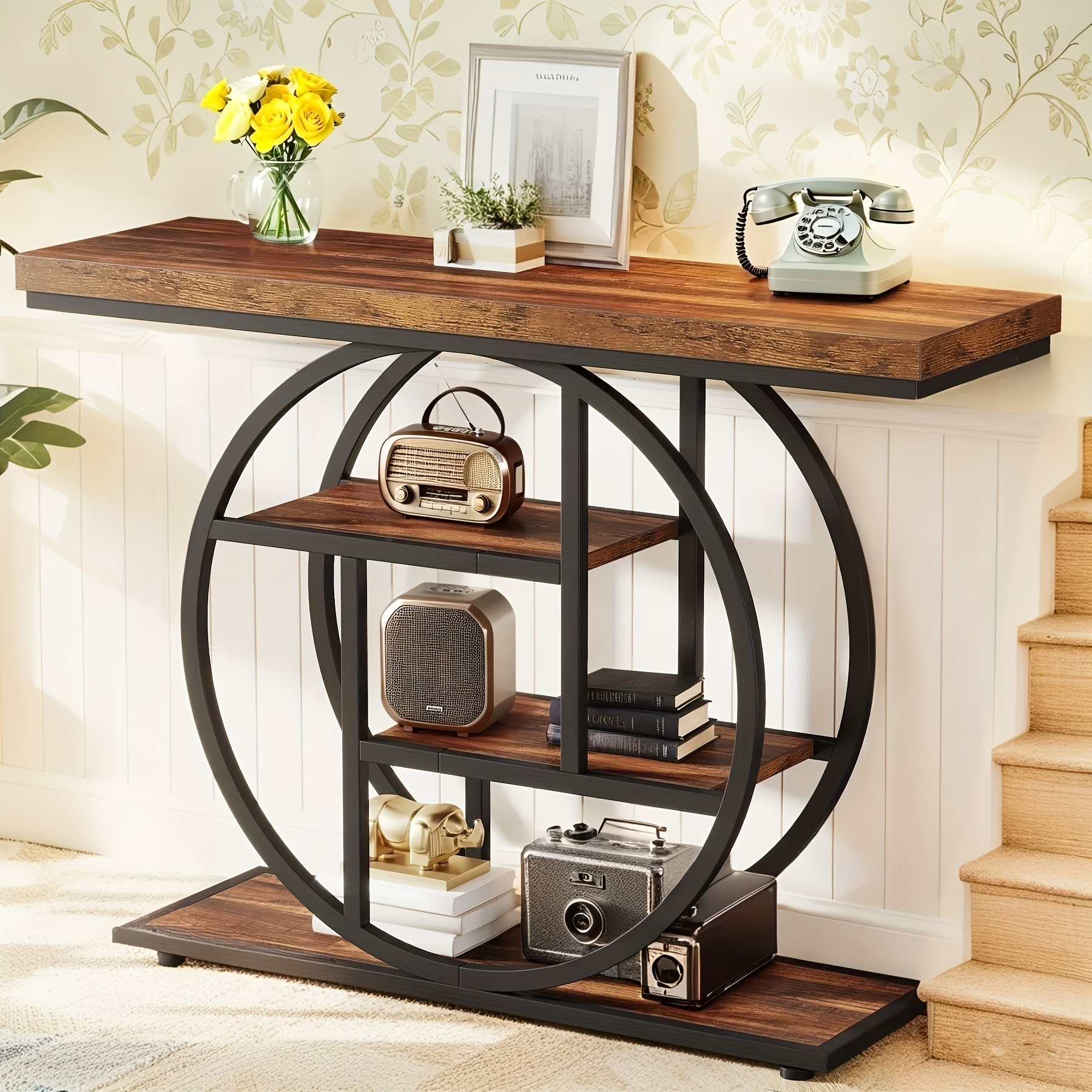 Multi-Tiered Storage: This 41.3-inch console table equipped with four shelves, provides generous display and organization space for books, photos, ornaments, and more, keeping your entrance or living room tidy and stylish.