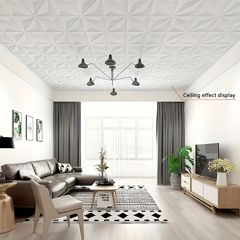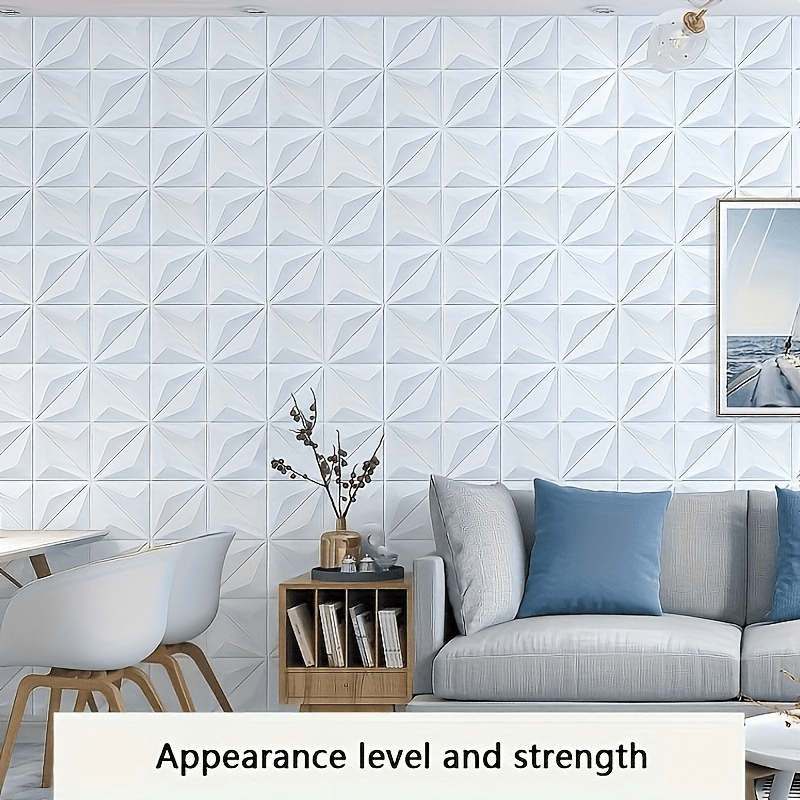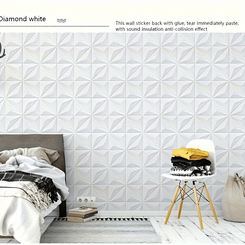 50pcs/100pcs 3D Wall Tile Matte White Self-adhesive Waterproof Wall Sticker, Easy To Clean And Free To Cut, For Kitchen, Living Room, Bathroom Corridor, Diamond Wall Sticker, Diamond Three-dimensional Pattern, 13.7 X 13.7in For Living Room