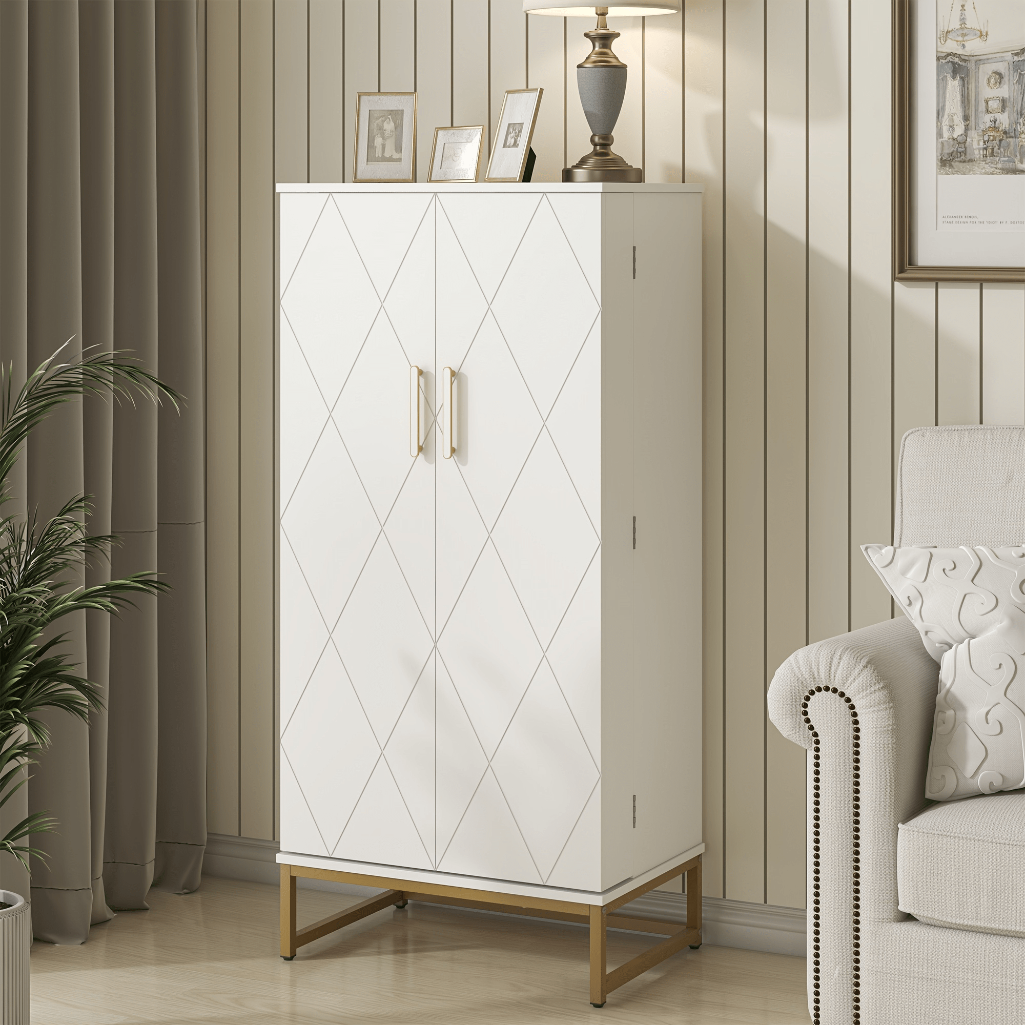 51"e; Modern Kitchen Pantry Cabinet with 6 Adjustable Shelves, Milti-function Storage Cabinet with Golden Metal Base, Versatile Large Buffet Cupboards Sideboard for Dining Room, Bathroom, Living Room, Laudry, White and Golden
