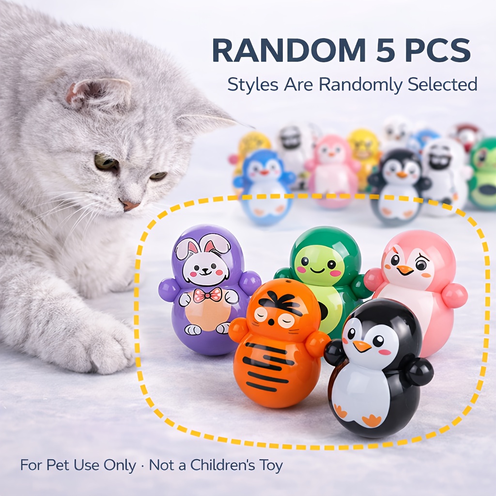 This set includes 5 randomly selected wobble cat toys. Styles and colors may vary. Each pack is unique for playful variety.