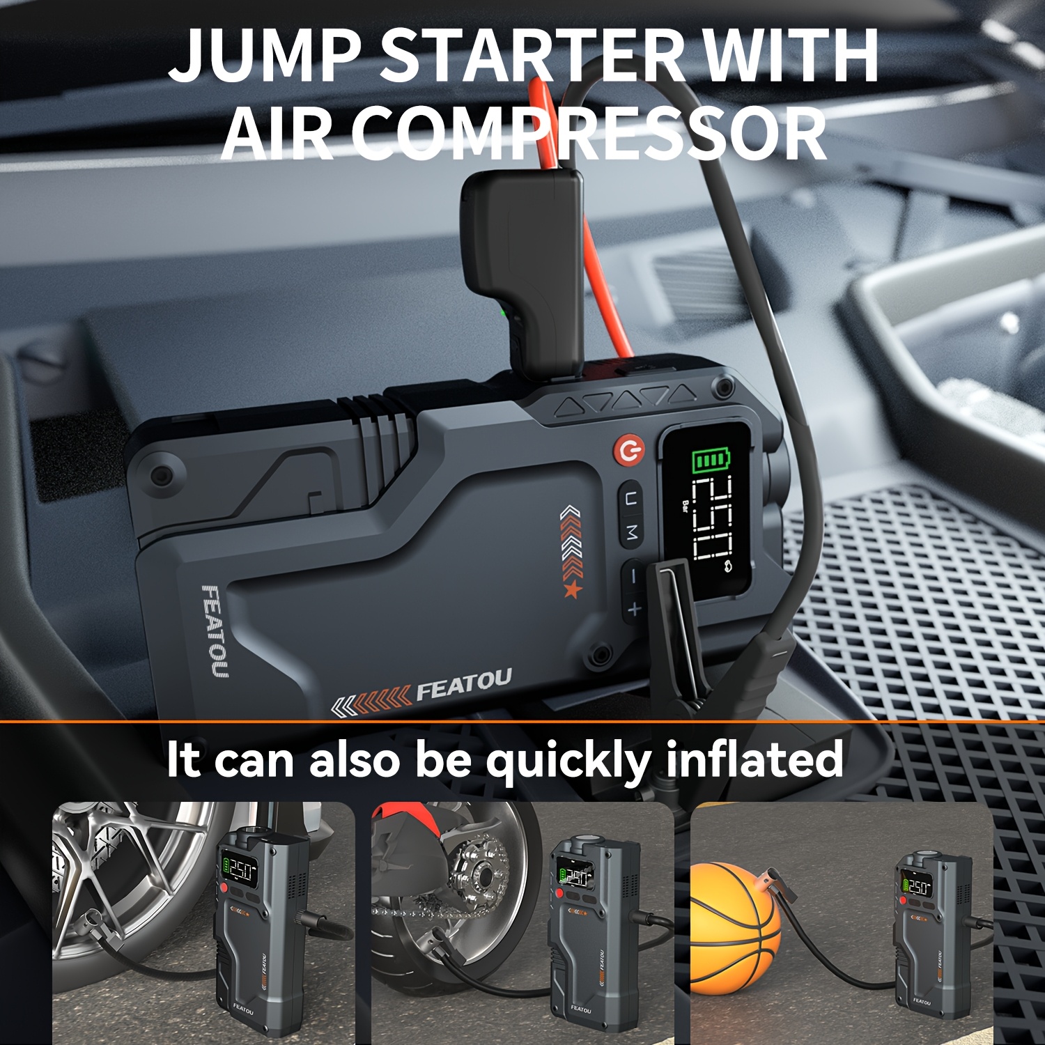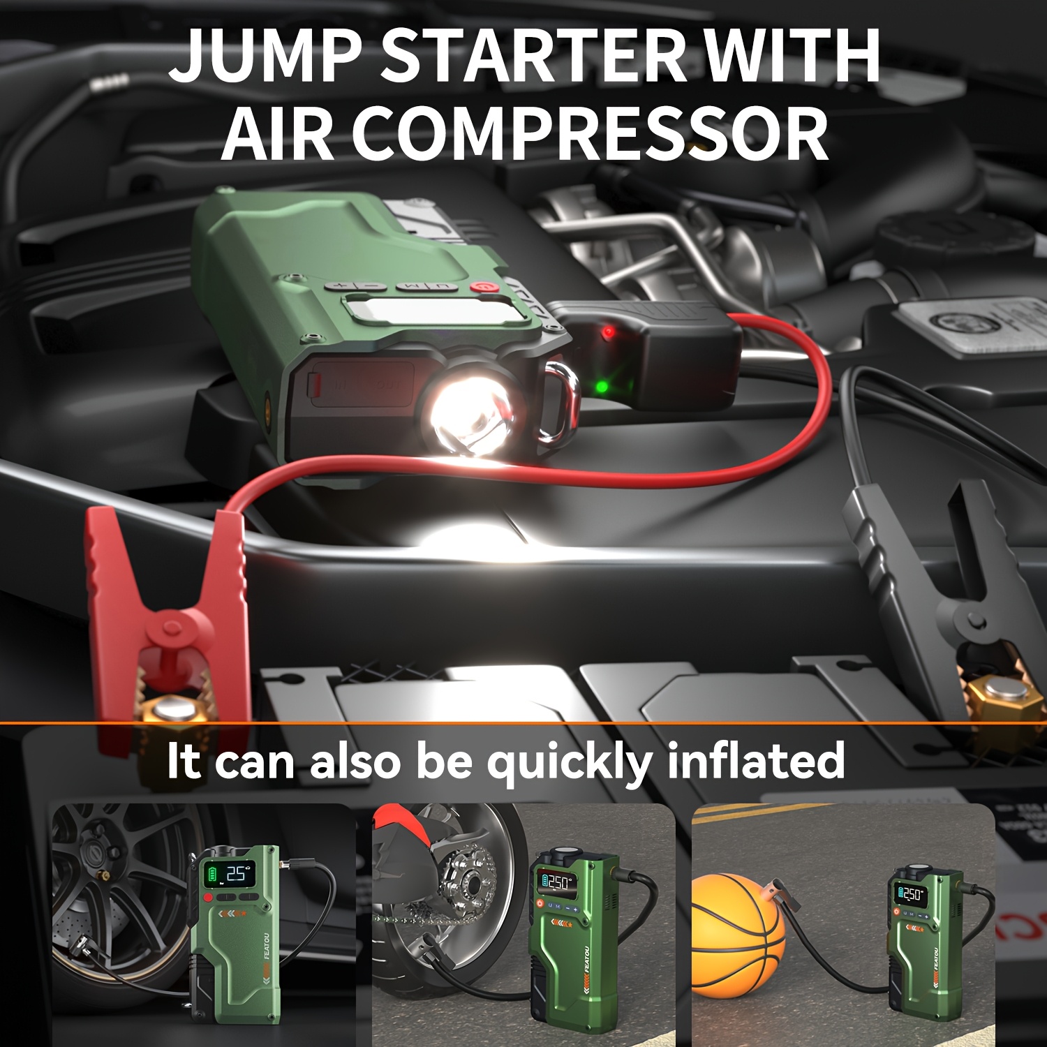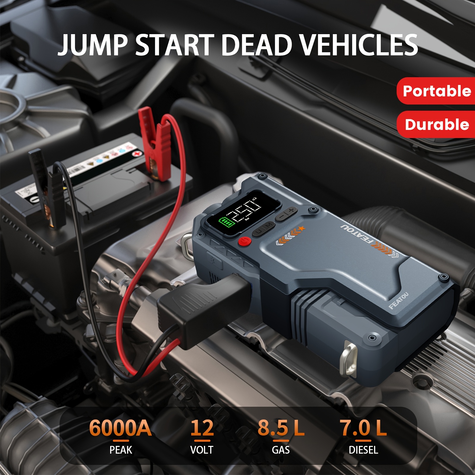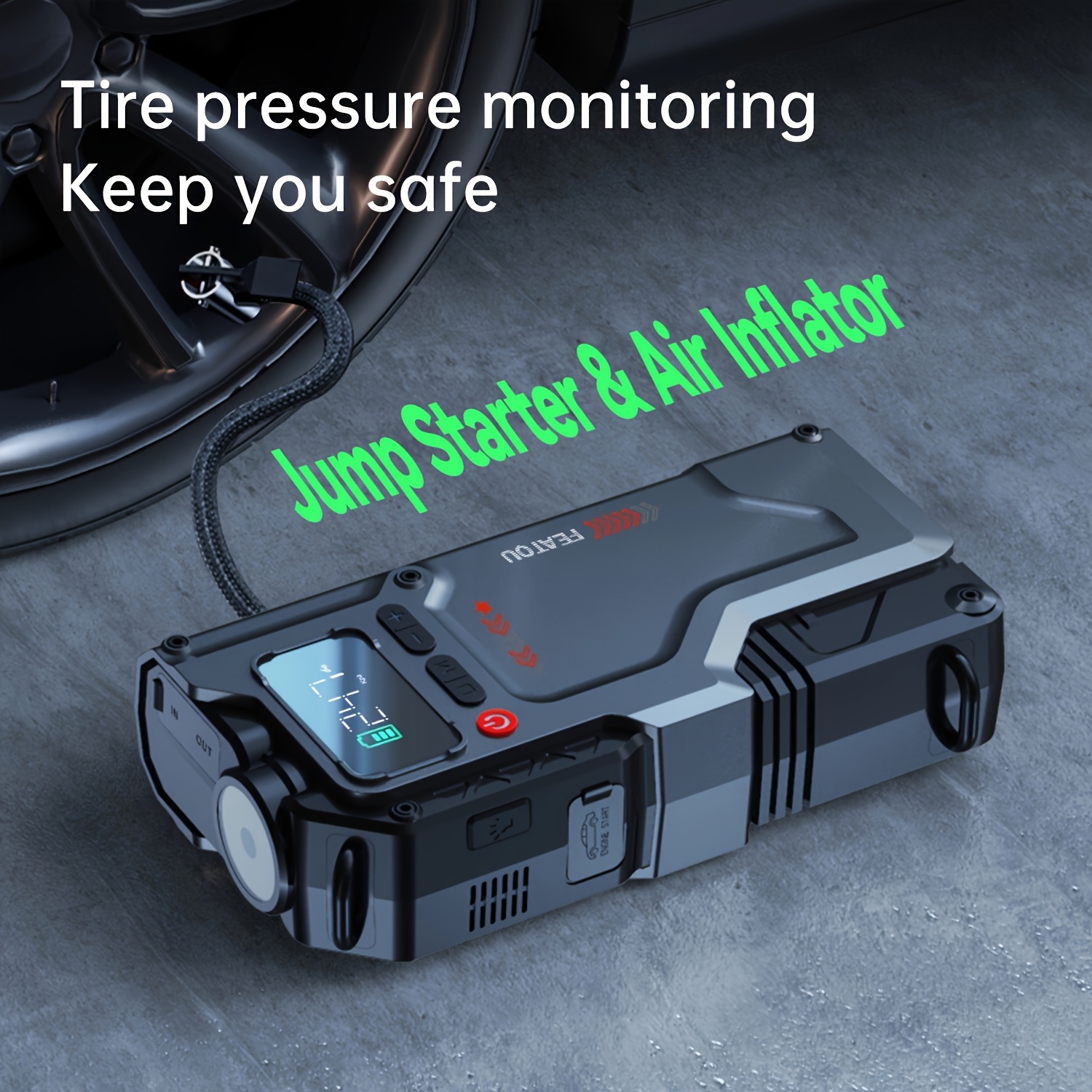 Precision “7-in-1 Function” Dynamics: The system features a “Tarsal-Interface-Symmetry.” This 6000A Jump Starter with Air Compressor “Material-Alignment” ensures $100\%$ “Operational-Optimization-Stability,” effectively eliminating the Utility-Mismatch-Friction via the integrated flashlight, power bank, and pressure-gauge logic which facilitates $100\%$ Safety-Target-Fidelity.