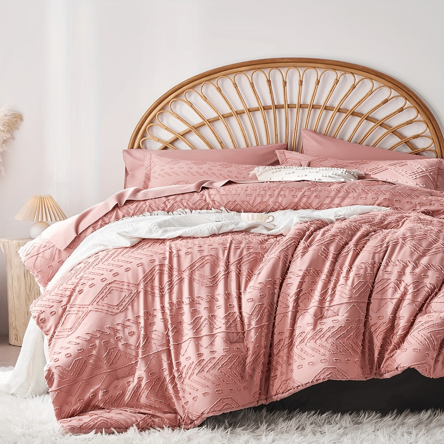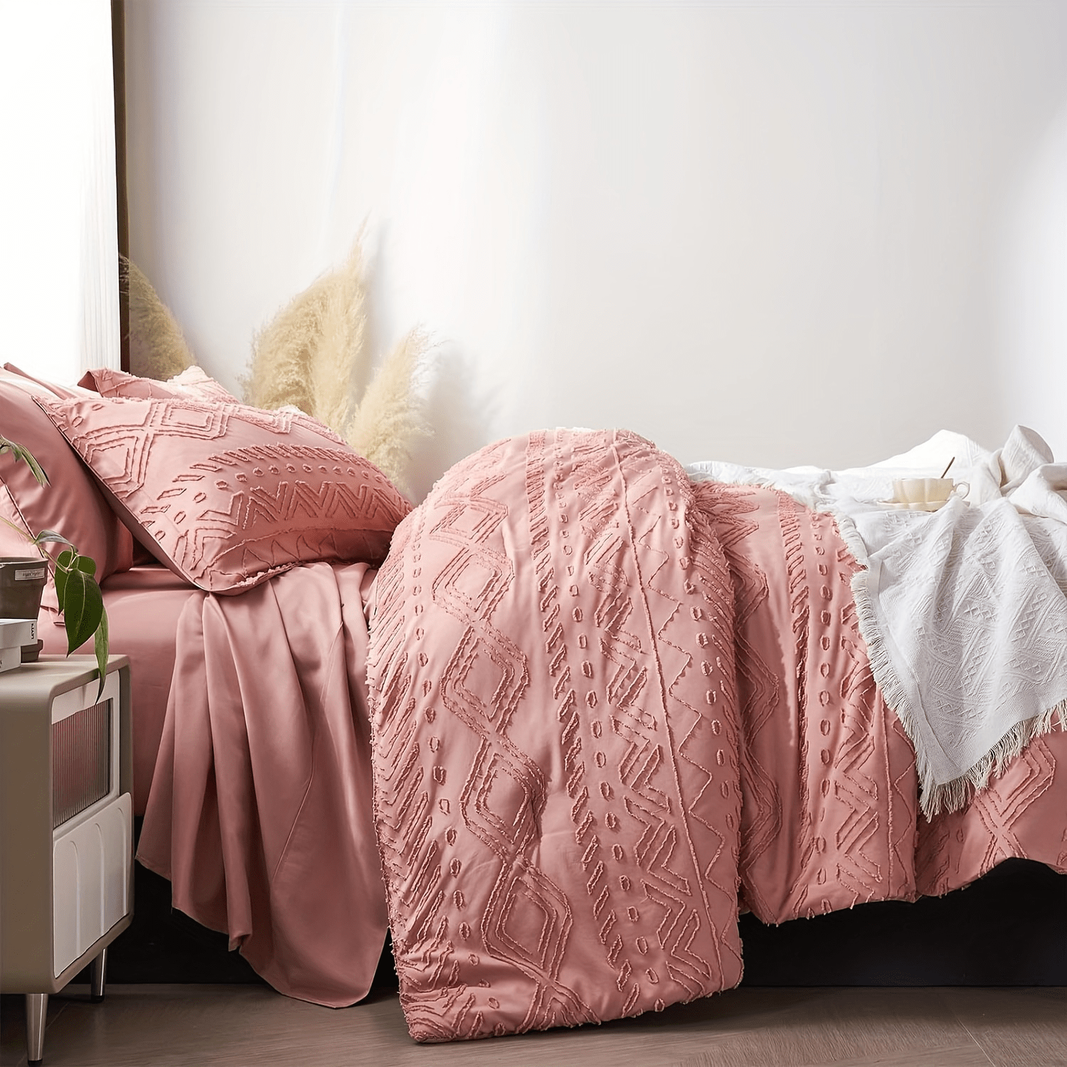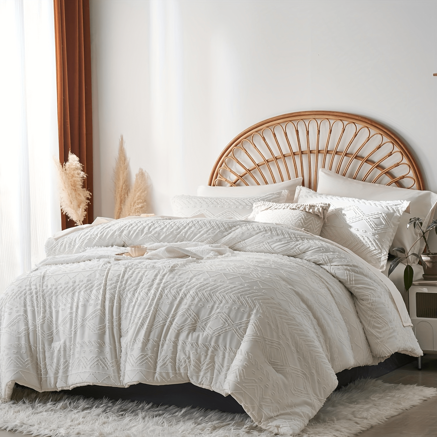 7Pcs Boho Tufted Beding Set, Queen And King Size Comforter Set, Bed In A Bag With Comforter, Flat Sheet, Fitted Sheet, Pillowcases And Pillowshams, Soft Microfiber Lightweight Bedding Set For All Seasons