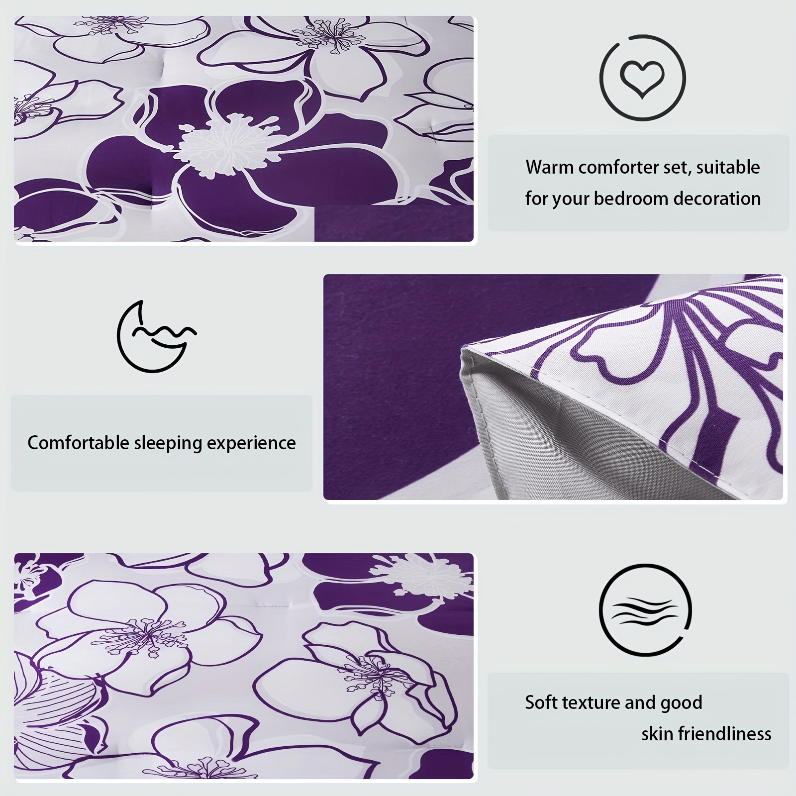 7pcs Six Petal Print Pattern Comforter Sets – Stain-Resistant, Soft 100% Microfiber Cover, Plush 100% Polyester Fiber Filling, Woven For Durability – Queen/King Size Bed In A Bag, Perfect For All Seasons