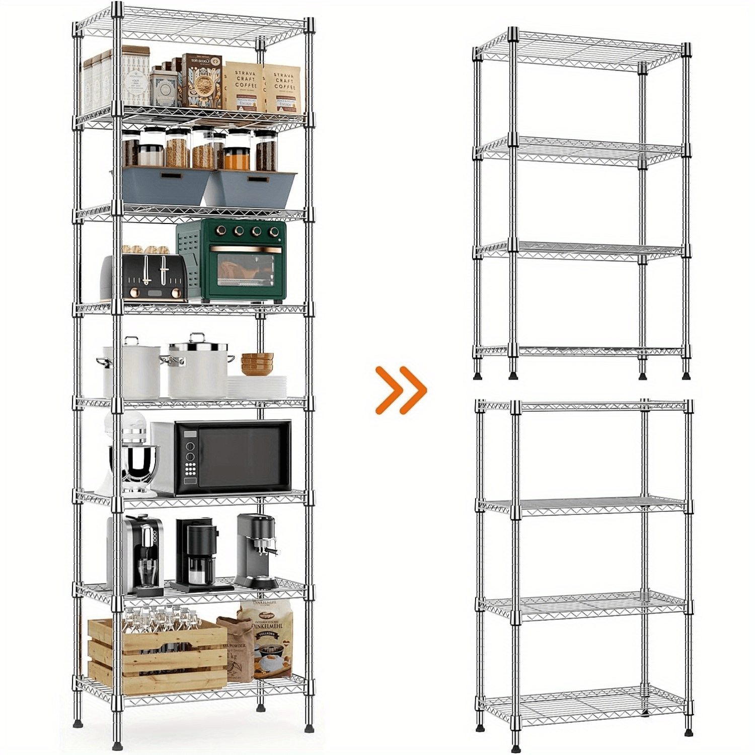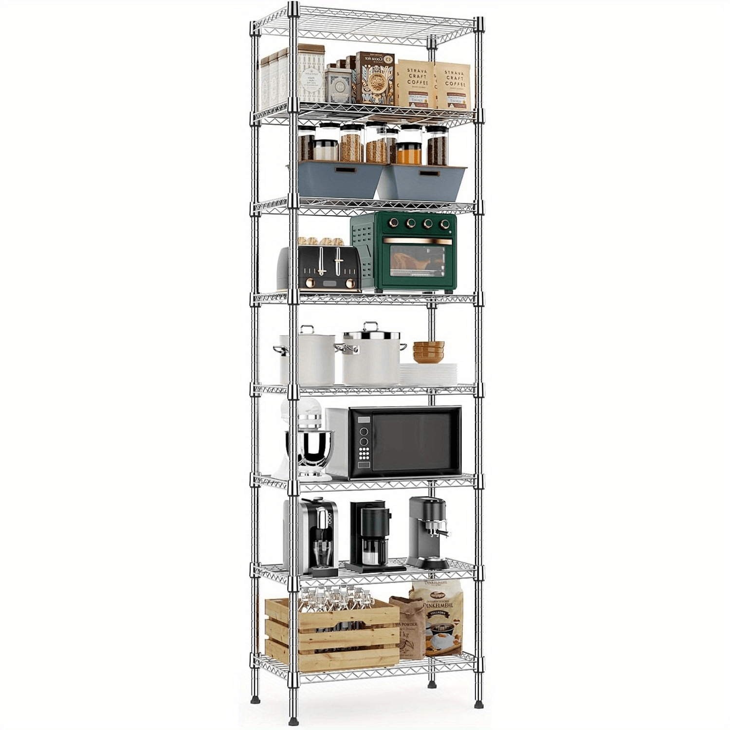 8-Tier Metal Wire Storage Rack, 2000 lbs Capacity, Chrome Finish Freestanding Shelf Organizer for Kitchen, Pantry, Laundry, Bathroom, Garage – Easy Assembly, 13.8&quote; x 23.6&quote; x 79.5&quote;, Utility Room Organizer|Modern Metal Shelf|Sturdy Construction, Utility She