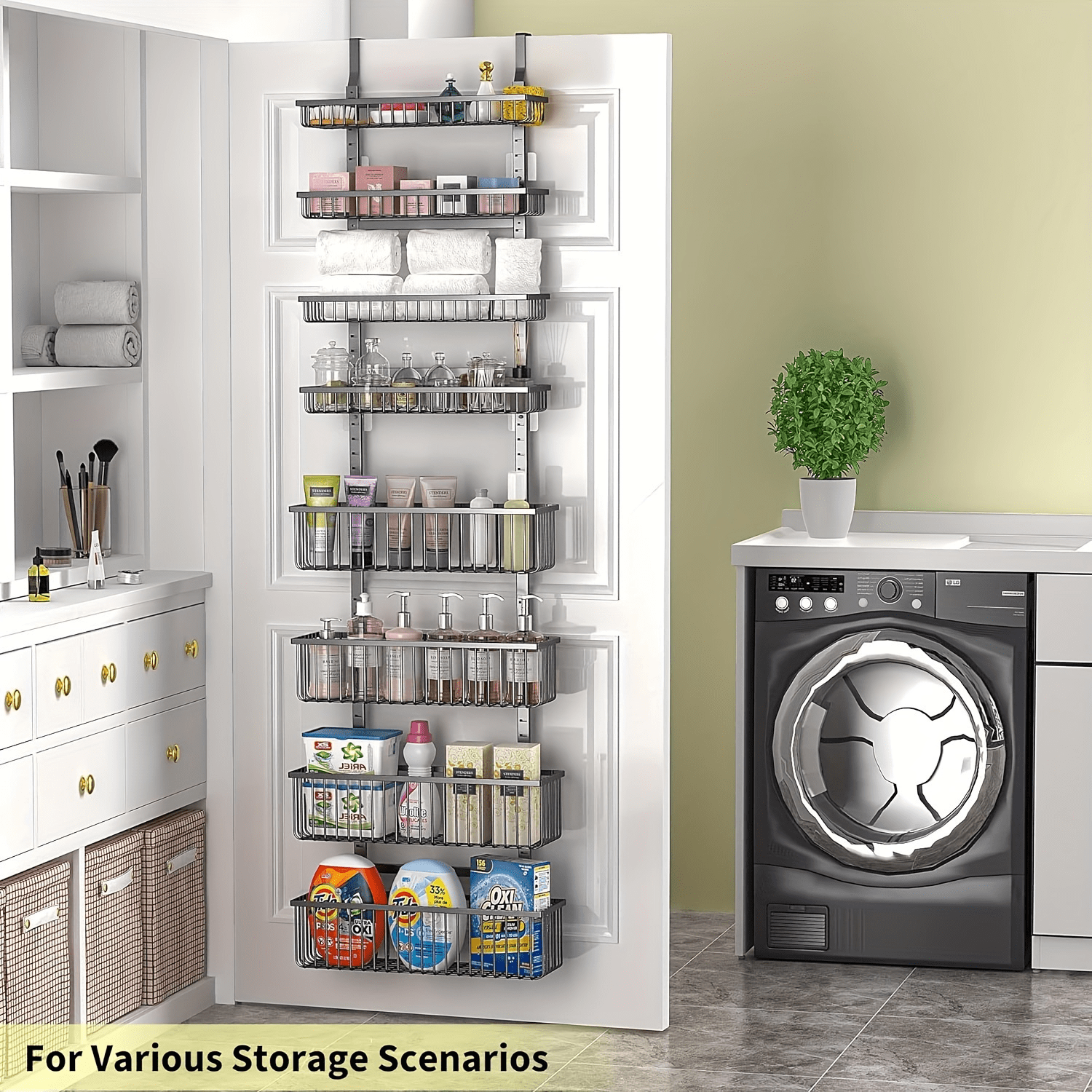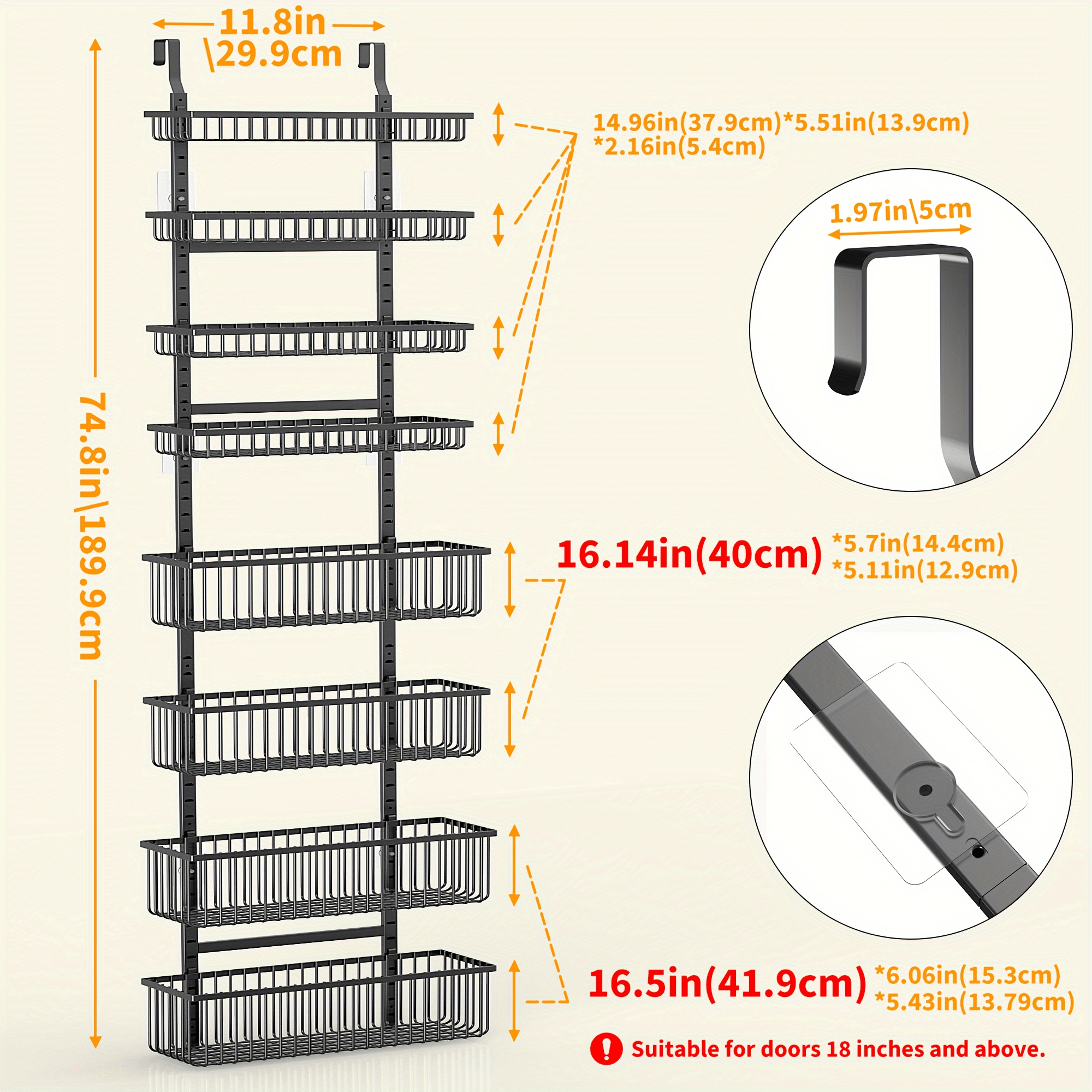 8-Tier Over The Door Pantry Organizer, Pantry Organization and Storage, Black Hanging Basket Wall Spice Rack Seasoning Shelves, Home & Kitchen Laundry Room Bathroom Essentials