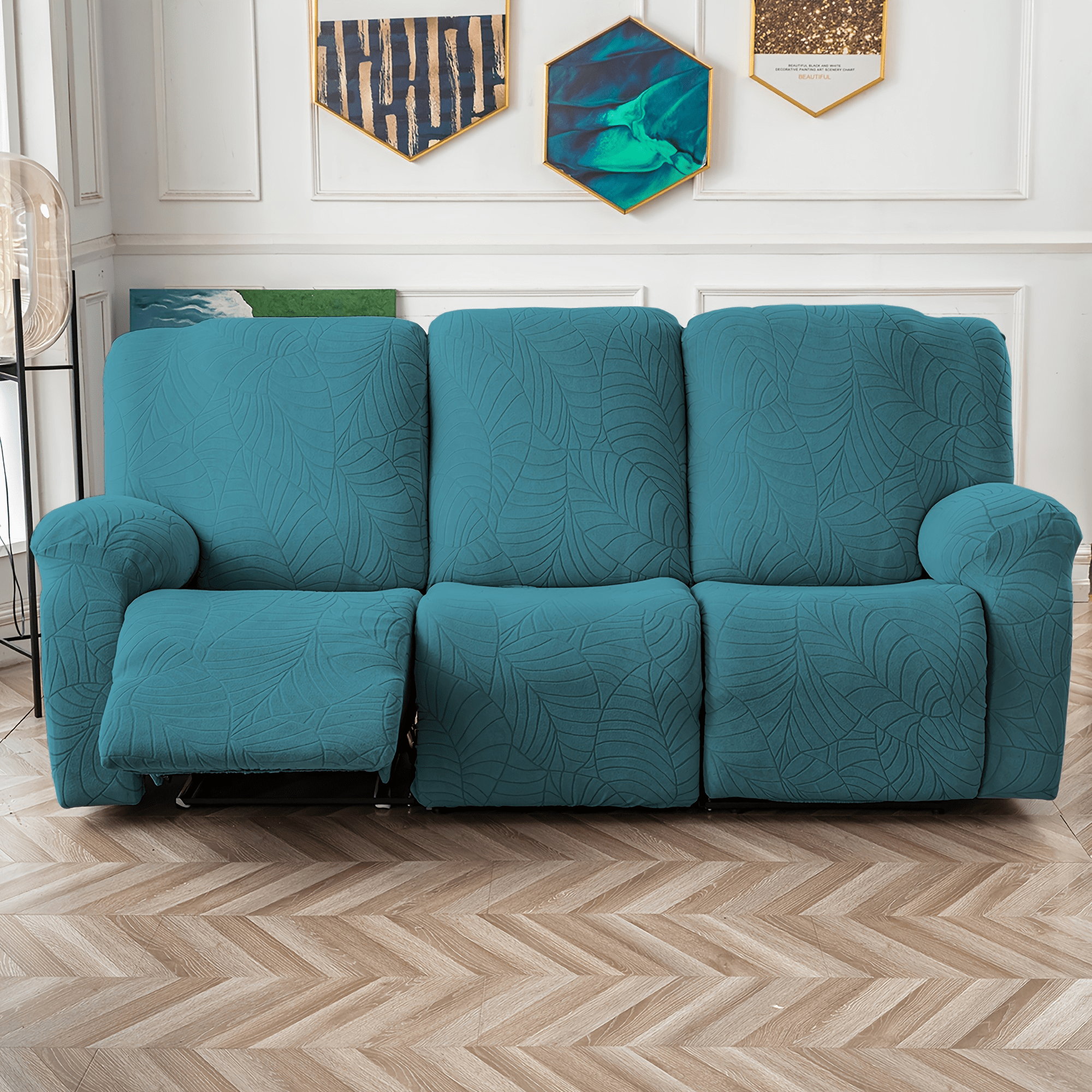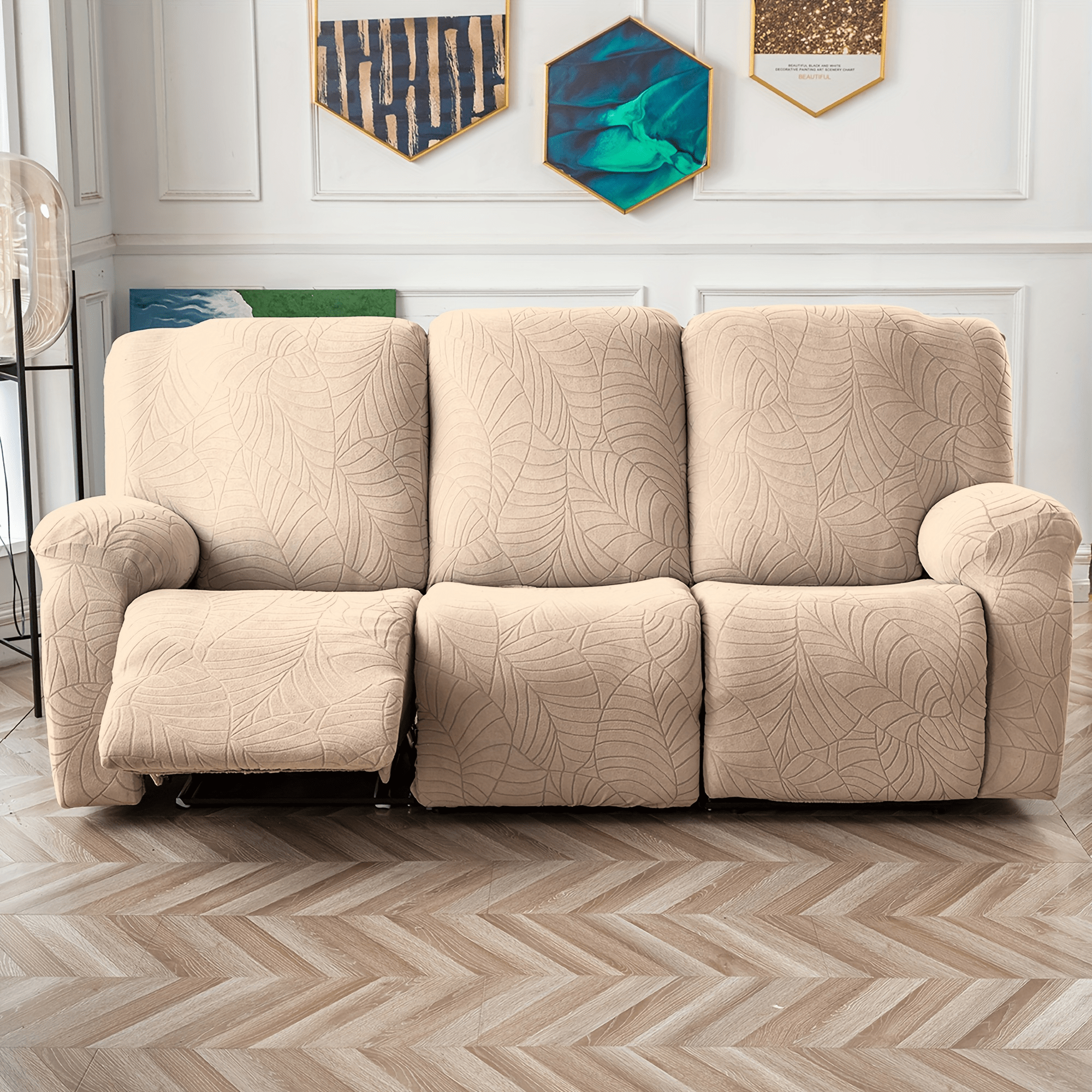 8pcs/set Water Resistant Leaf Texture Jacquard Stretch Recliner Slipcover Non-Slip Removable Washable And Soft Recliner Chair Cover For Hotel, Living Room, Office, And Home Decor