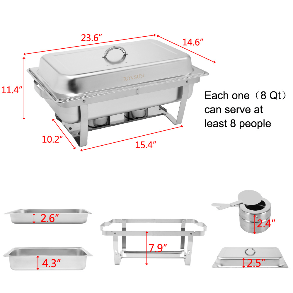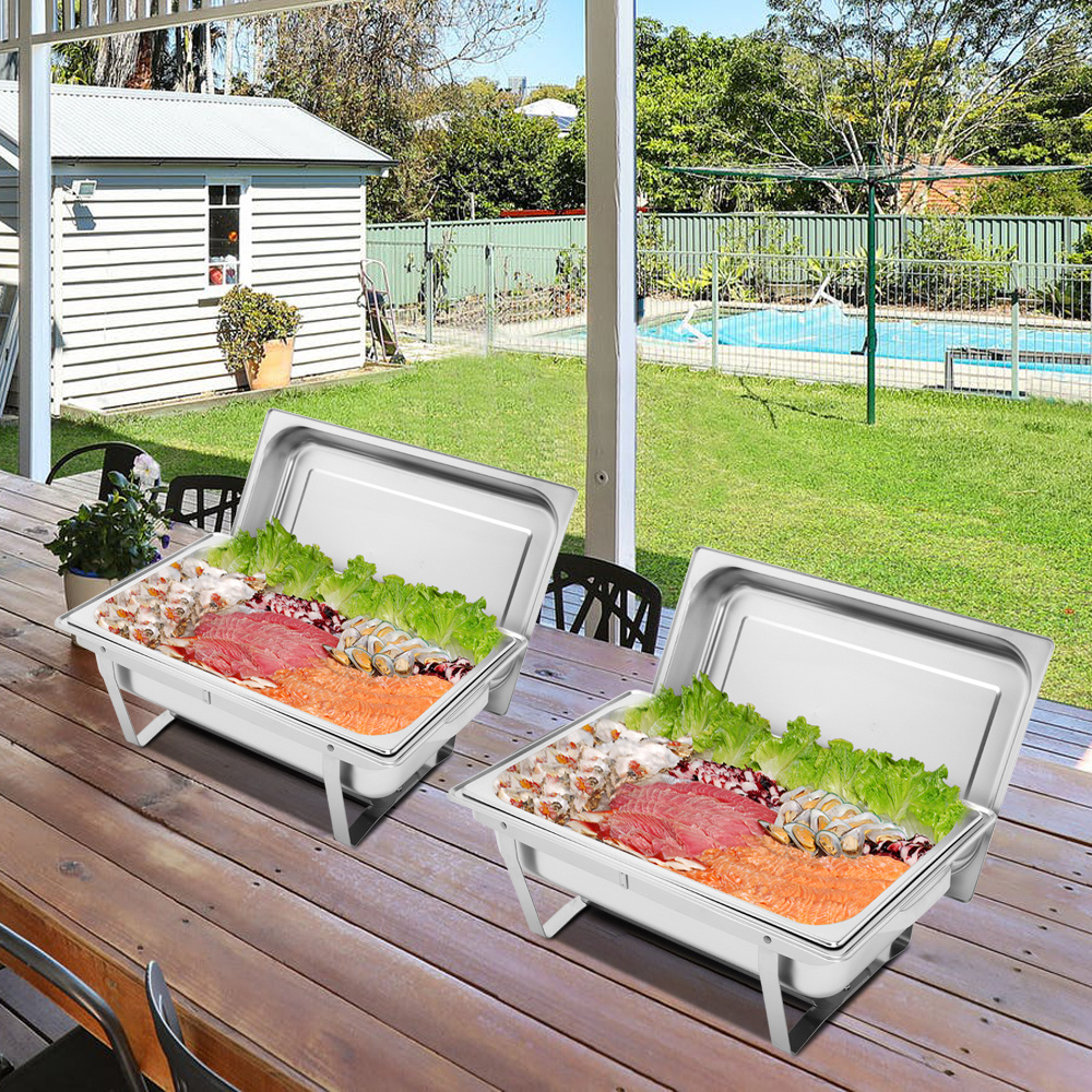 8QT Stainless Steel Chafing Dish Catering Set – Professional Buffet Chafer Warmer with Removable Trays, Lid & Foldable Frame Stand for Banquets, Parties, Kitchen & Events only for cooking