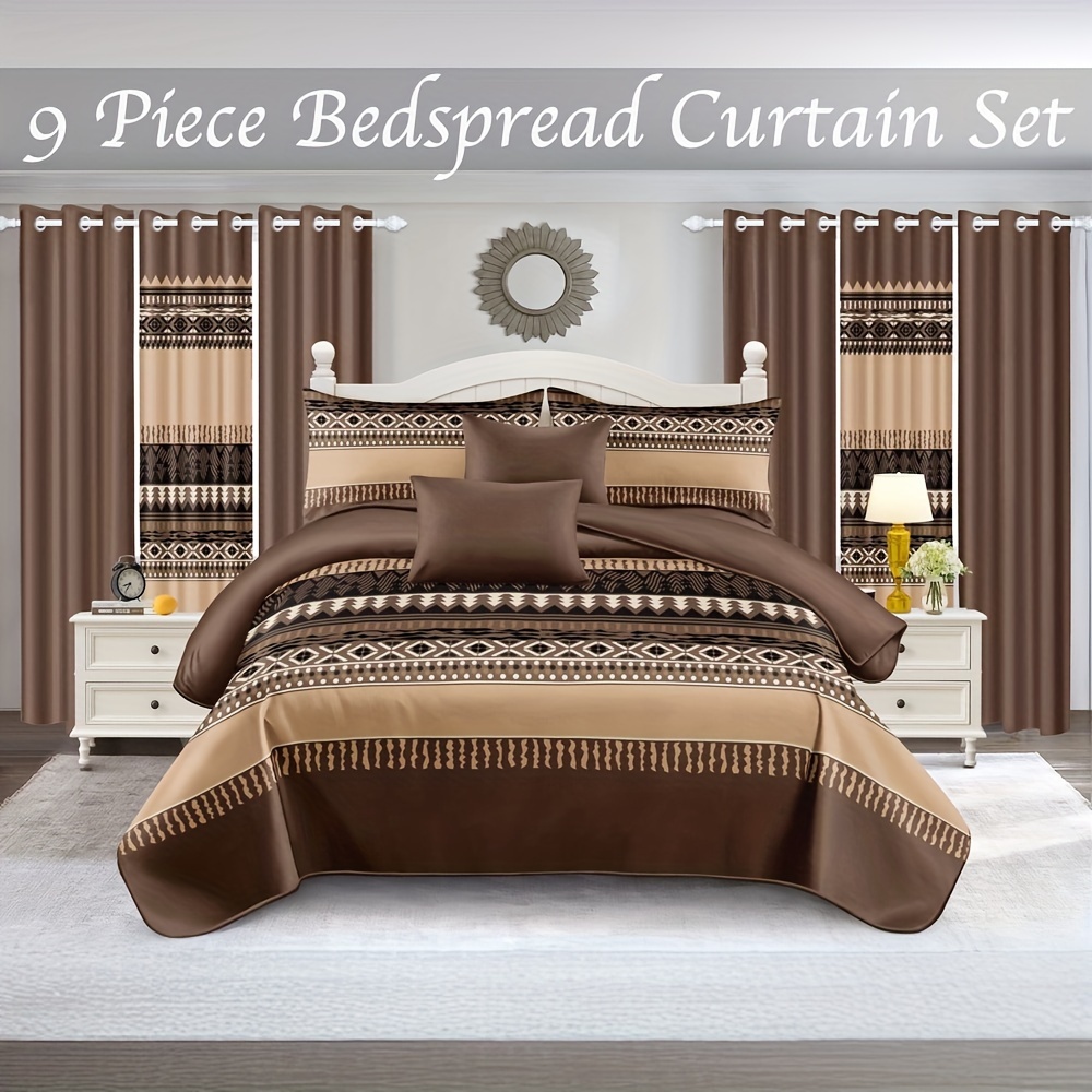9 Piece In A Bag Bed Cover Curtain Set, Bedspread Set, Bamboo Microfiber Hypoallergenic All Season Bedding-Set – Red Flower