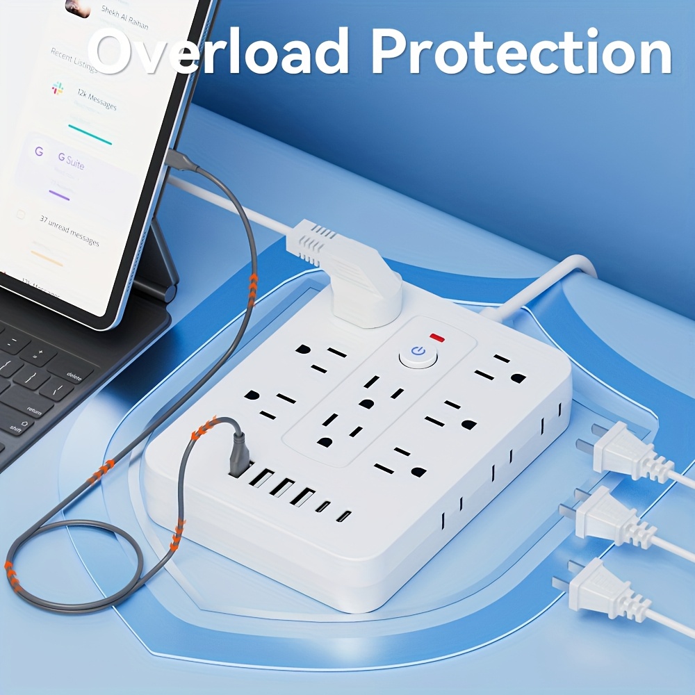 Precision “USB & Type-C” Dynamics: The system features a “Multi-Protocol-Interface.” This Multifunctional Power Strip “Spatial-Alignment” ensures $100\%$ “Resource-Optimization-Stability,” effectively eliminating the “Brick-Clutter-Friction” via the 4 USB and 2 Type-C outputs which facilitate $100\%$ “Direct-DC-Fidelity” for mobile assets.
