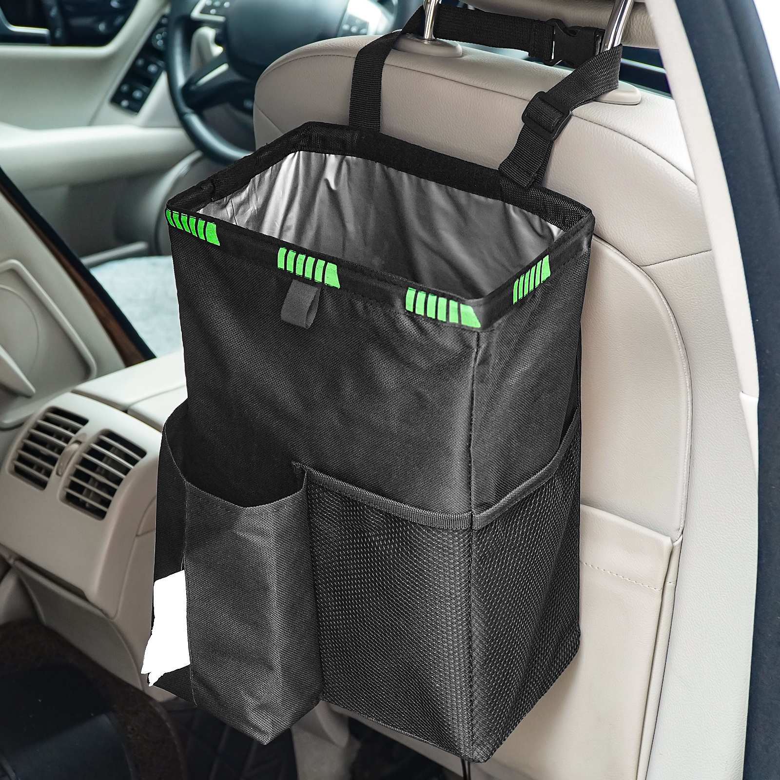 Universal “Multi-Pocket” Logistics: The “Component-Symmetry” is engineered for Hardware-Integration-Inertia. This “Structural-Interface” facilitates “Entry-Velocity” via the external mesh-netting logic, effectively mitigating the Logistical-Mismatch-Friction and providing an industrial-grade Car Organizers standard for layouts where the ability to bridge the Waste-Disposal-to-Essential-Storage-Gap is mandatory for temporal poise.