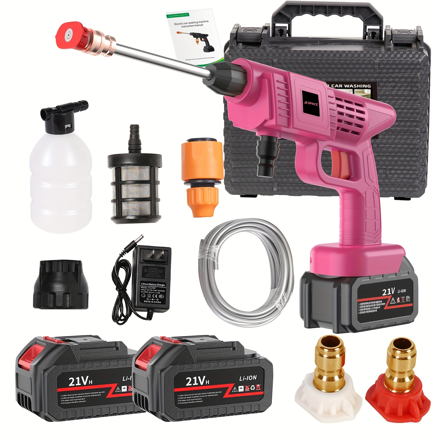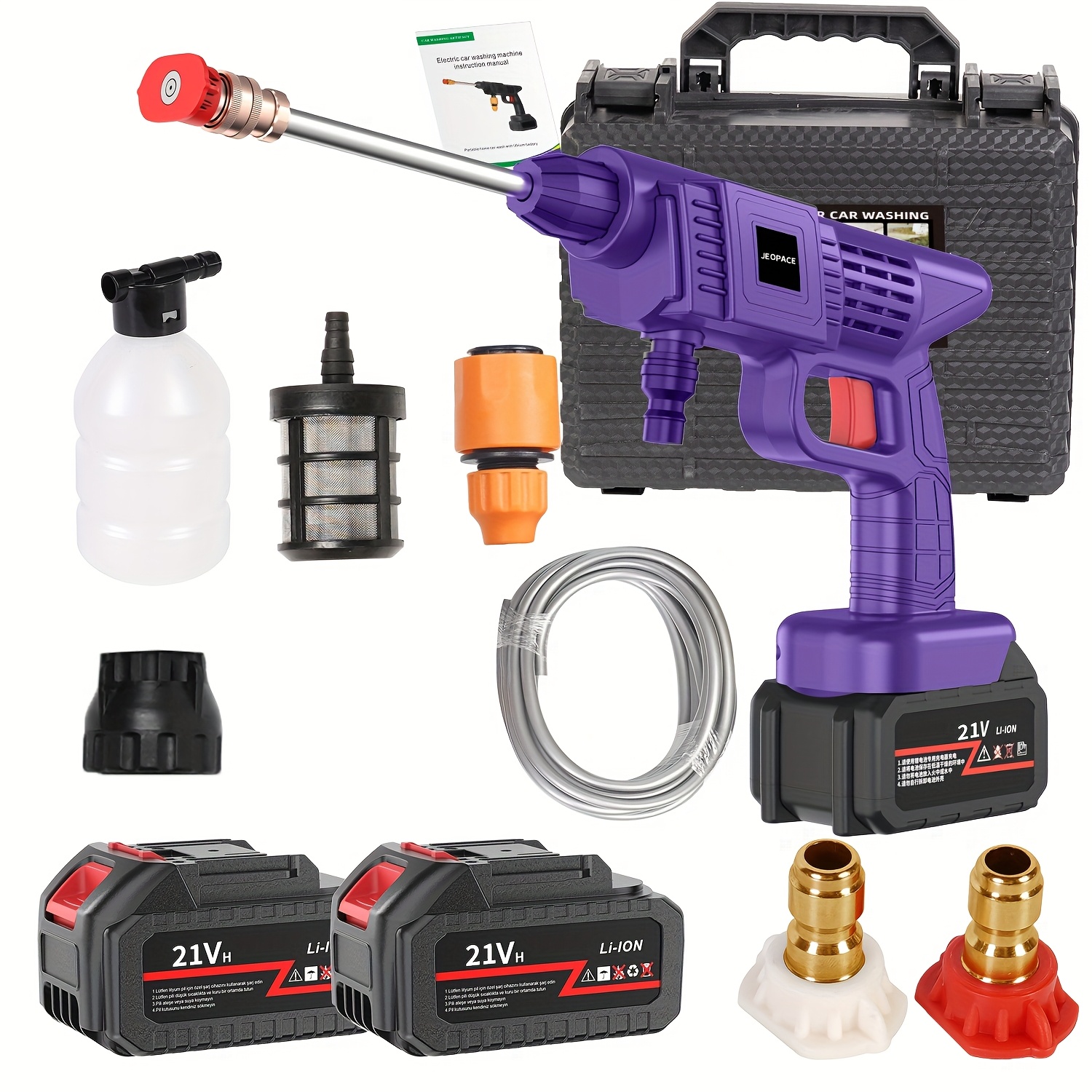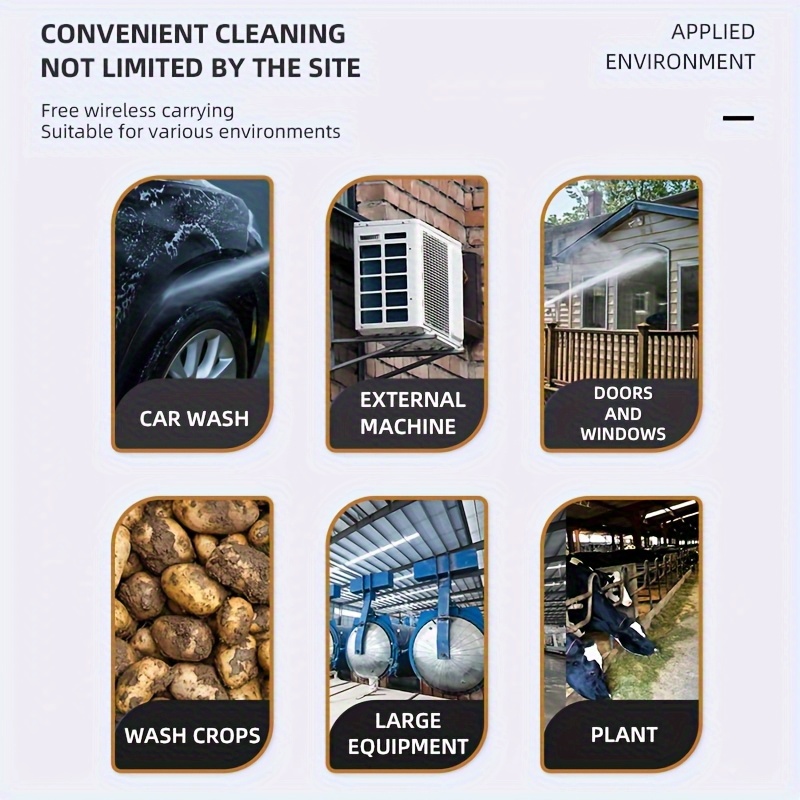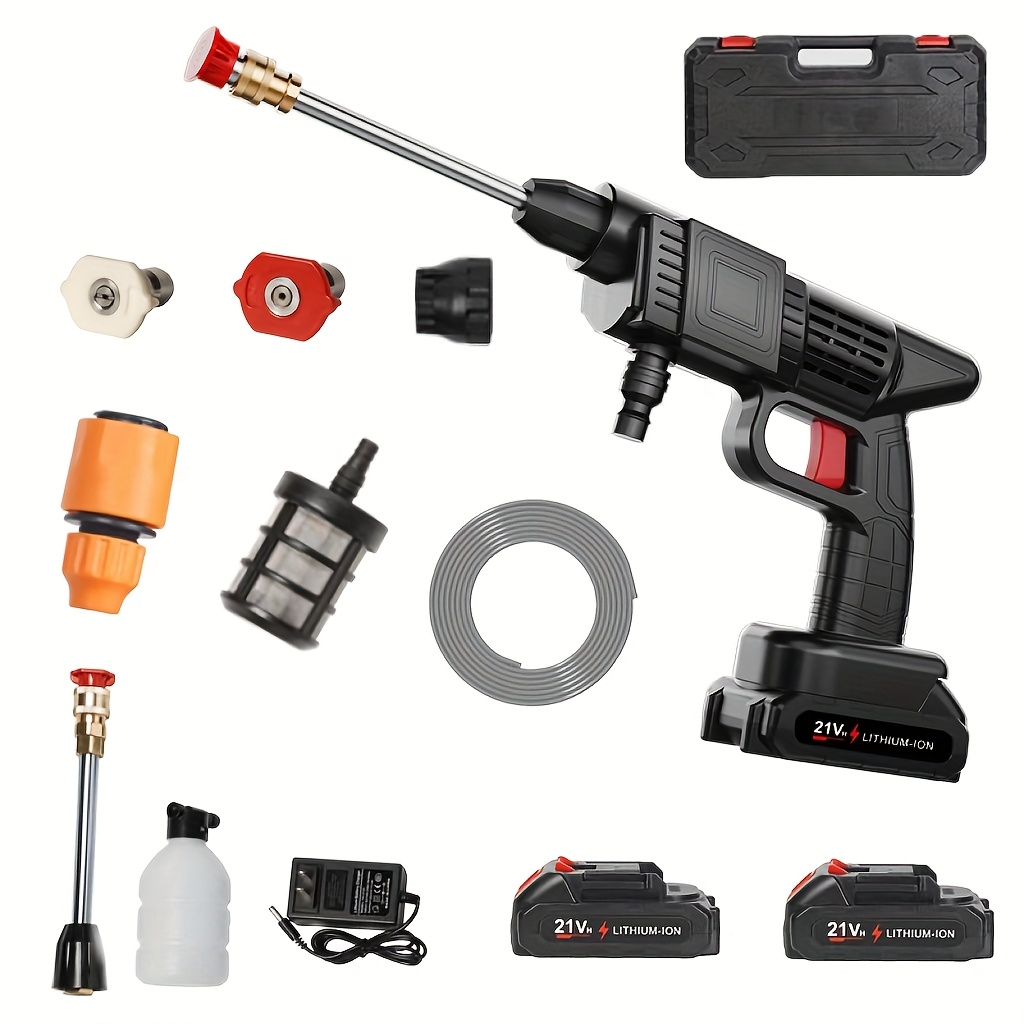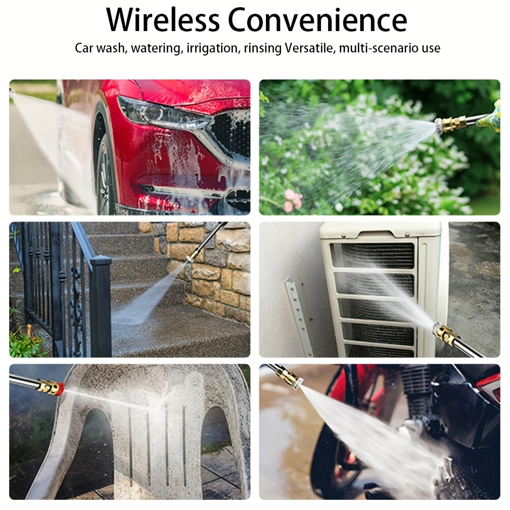 Experience the ultimate freedom of cleaning with this heavy-duty cordless high-pressure washer. Powered by a rechargeable battery, this portable power car wash tool delivers exceptional performance for your toughest jobs. Easily clean your car, driveway, yard, and garden without being restricted by cords. Includes a stainless steel foam nozzle for professional-grade washing. A truly battery-powered and space-saving cleaning solution.