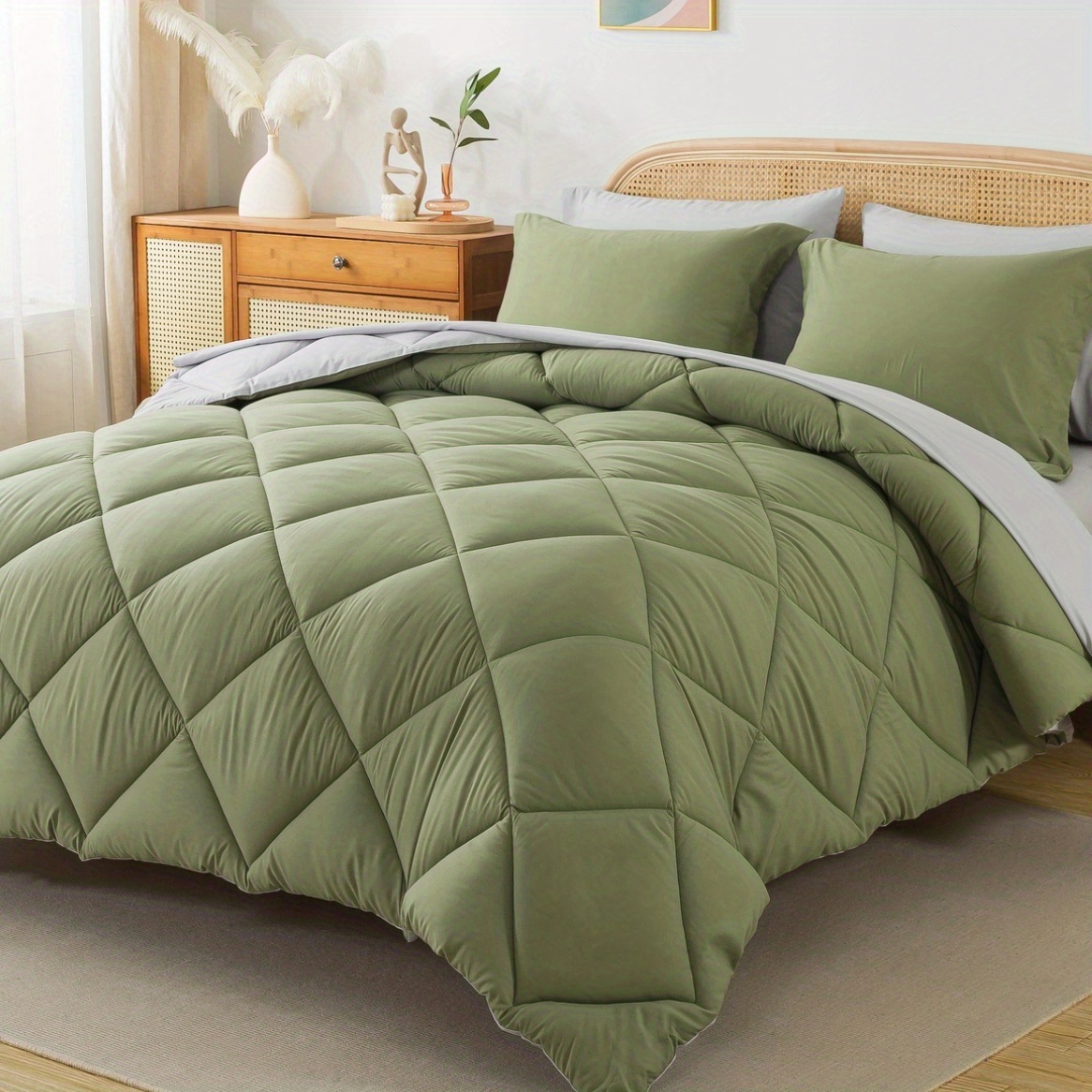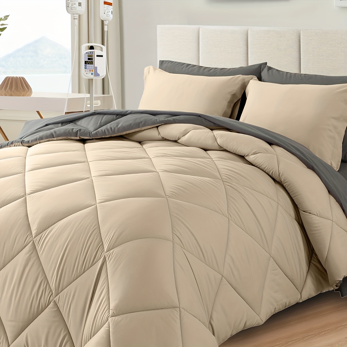 [Complete 7-piece comforter set]7-piece bed in a bag set comes with a comforter, two pillowcases, two pillow shams, a fitted sheet and a flat sheet to completely and conveniently transform your bare mattress into a cozy sleep haven with just one bundle and delivers year-round comfort and warmth.