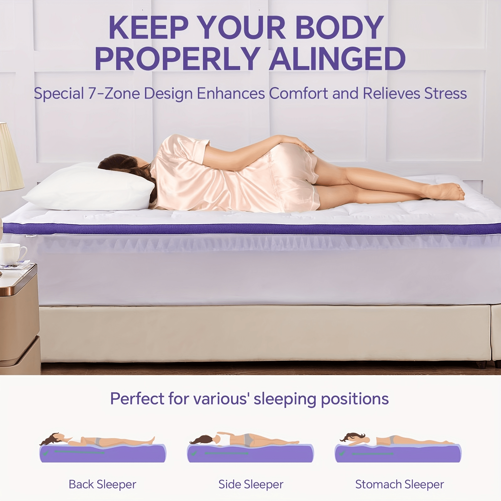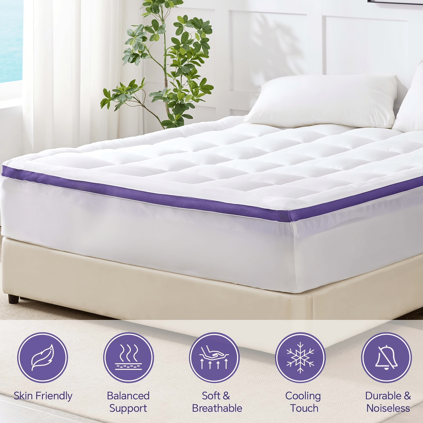Dual Layer 4 Inch Cooling Mattress Topper Queen – 2 Inch Gel And 2 Inch Pillow Top Mattress Pad, Soft Comfortable Bedding Mattress Cover, 7-Zone Egg Crate Mattress Topper, For Bedroom, Guest Room
