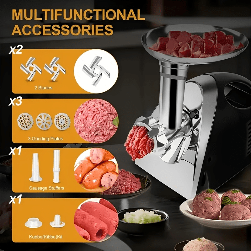 Be the first to review “Electric Meat Grinder with Stainless Steel Blades & Plates, Heavy-Duty Motor, Sausage Stuffer Tubes with Portable Handle – Compact Design for Home Kitchen, Commercial Use, Easy-Clean – Ideal for Beef, Pork, Chicken, Vegetables – Perfect Gift for Cooking E” Cancel reply