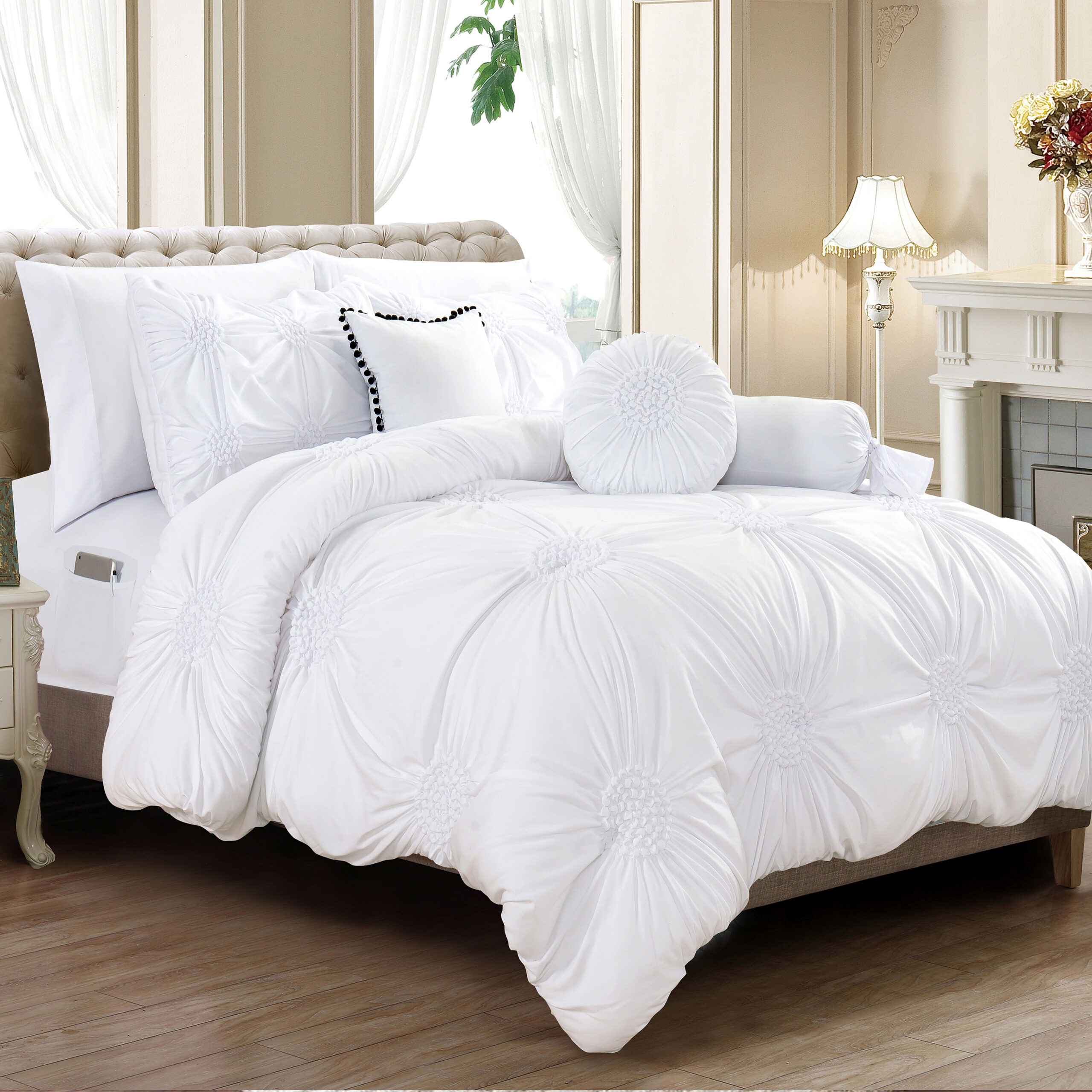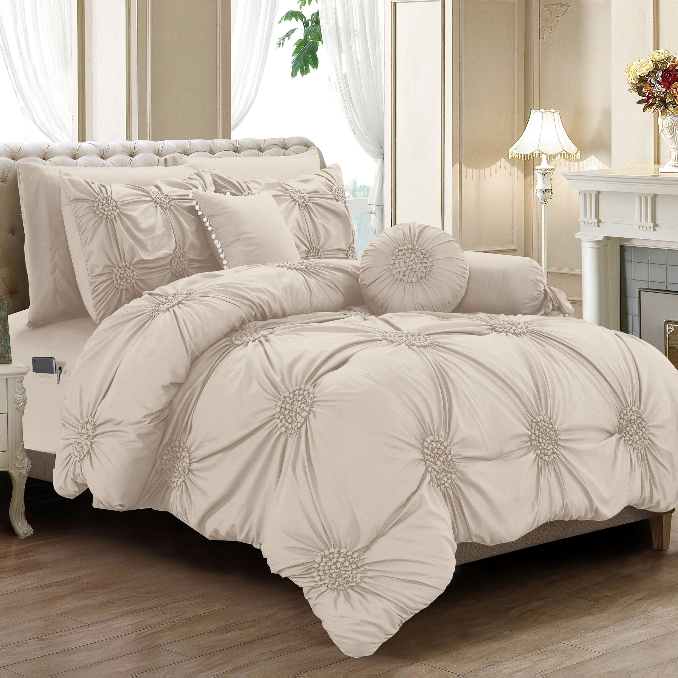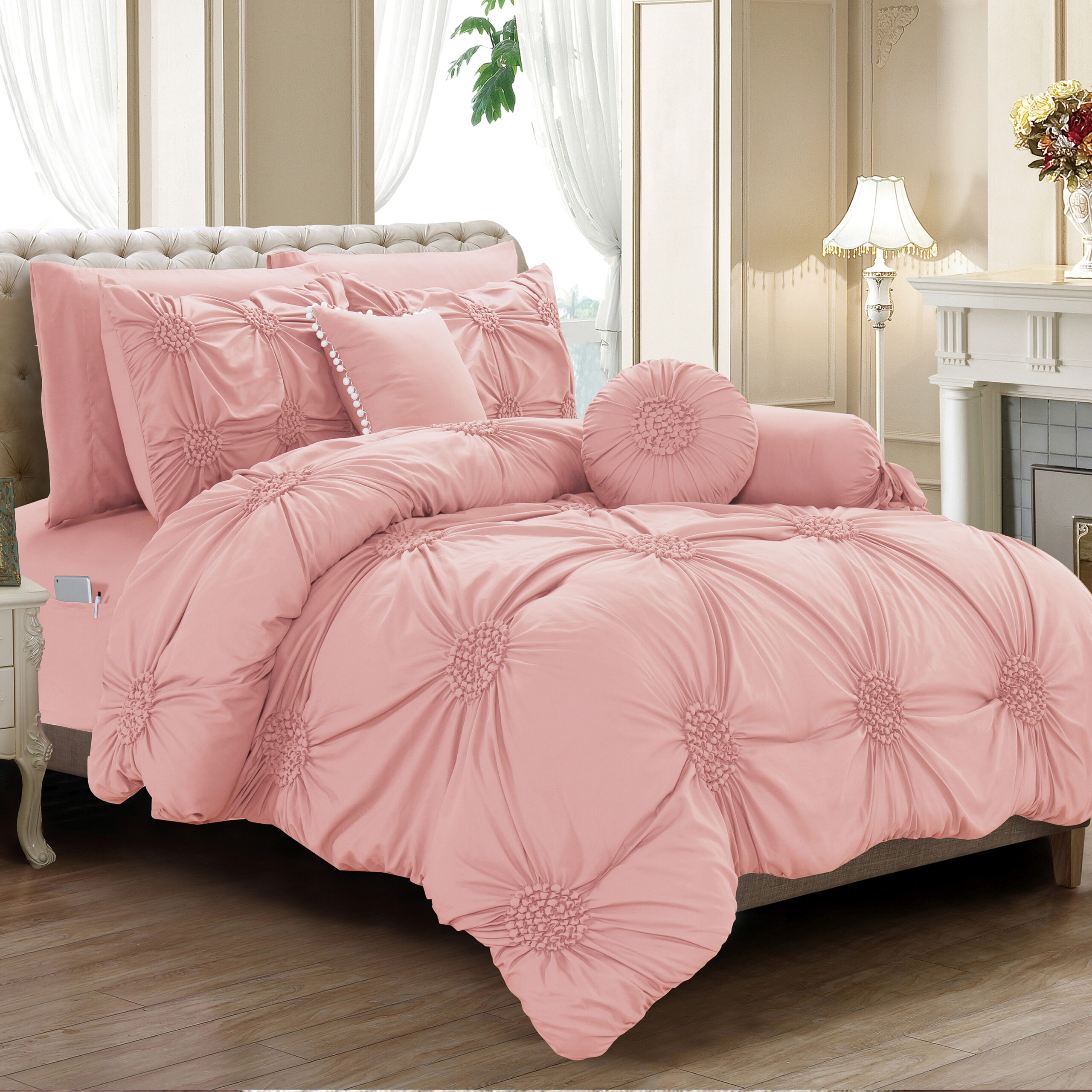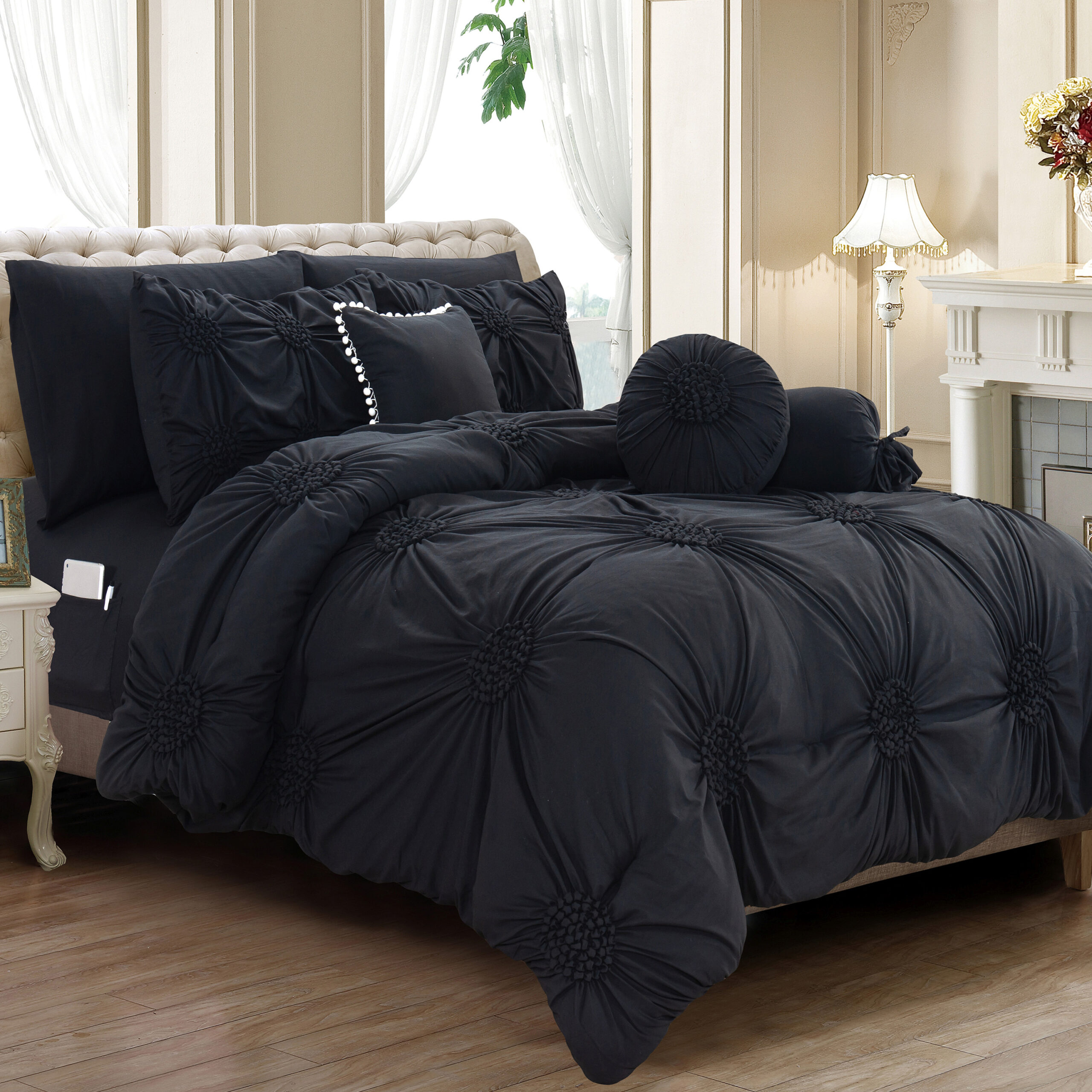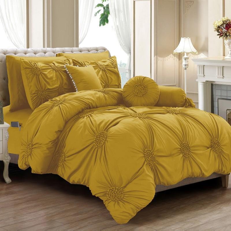 Elegant Comfort Luxurious 10pcs Fine Pinch Pleated Sunflower Comforter Set Includes 4pc Sheet Set with Double Sided Storage Pockets Soft Breathable, Easy Care Quilt Comforter Sets, Full/Queen King/California King Size Bed With Stylish Decor And Accessorie